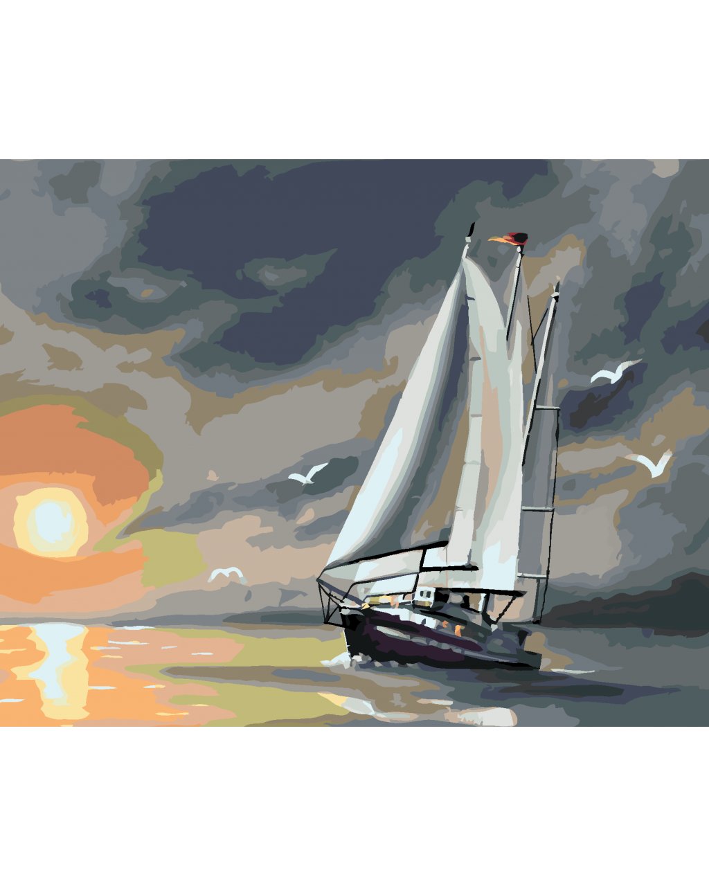 Malování podle čísel - PLACHETNICE, RACCI A ZÁPAD SLUNCE (D. RUSTY RUST)