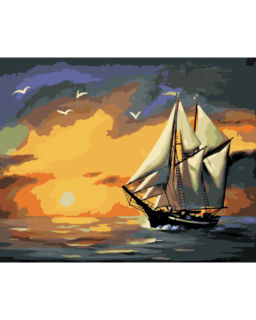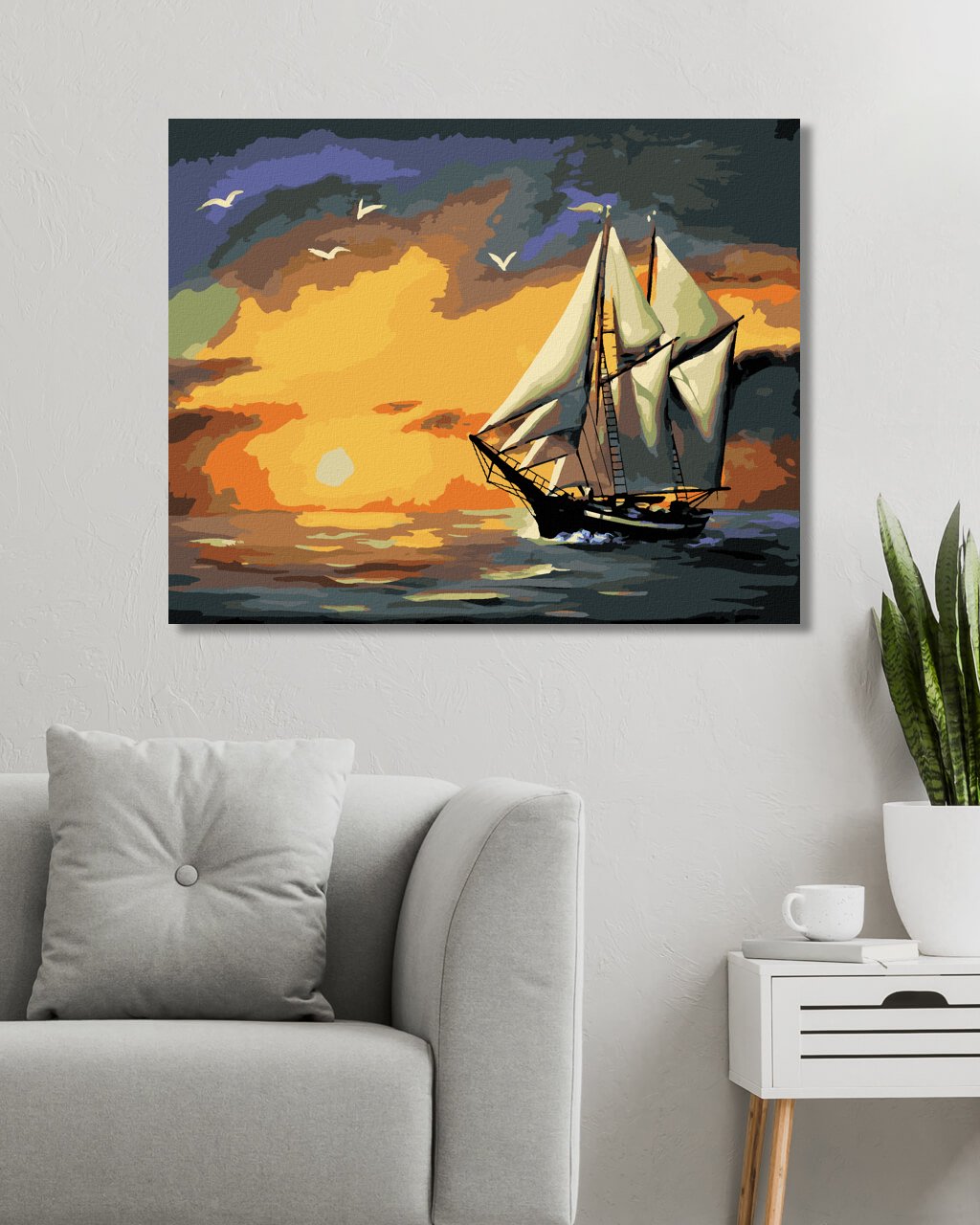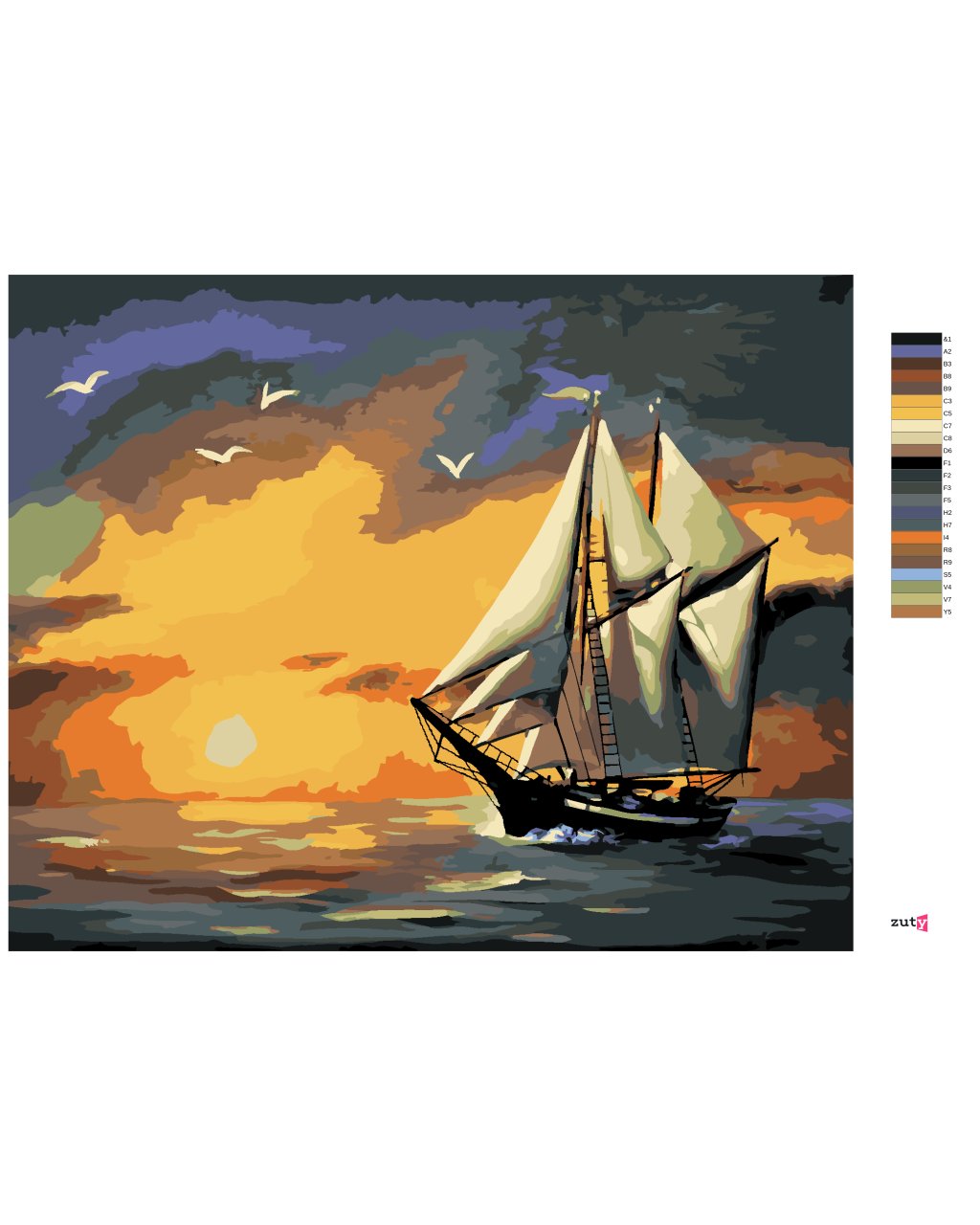 Malování podle čísel - PLACHETNICE, ZÁPAD SLUNCE A RACCI (D. RUSTY RUST)