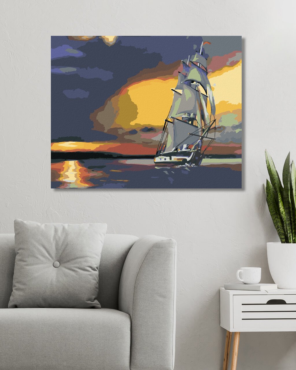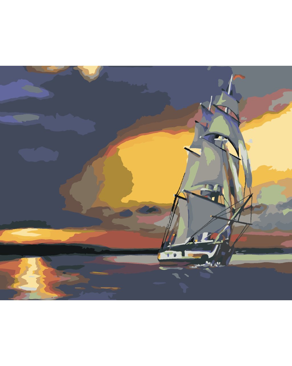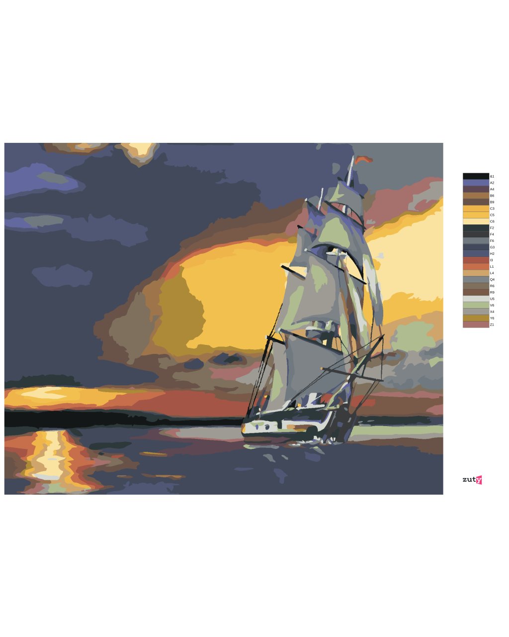 Malování podle čísel - PLACHETNICE A ZÁPAD SLUNCE (D. RUSTY RUST)