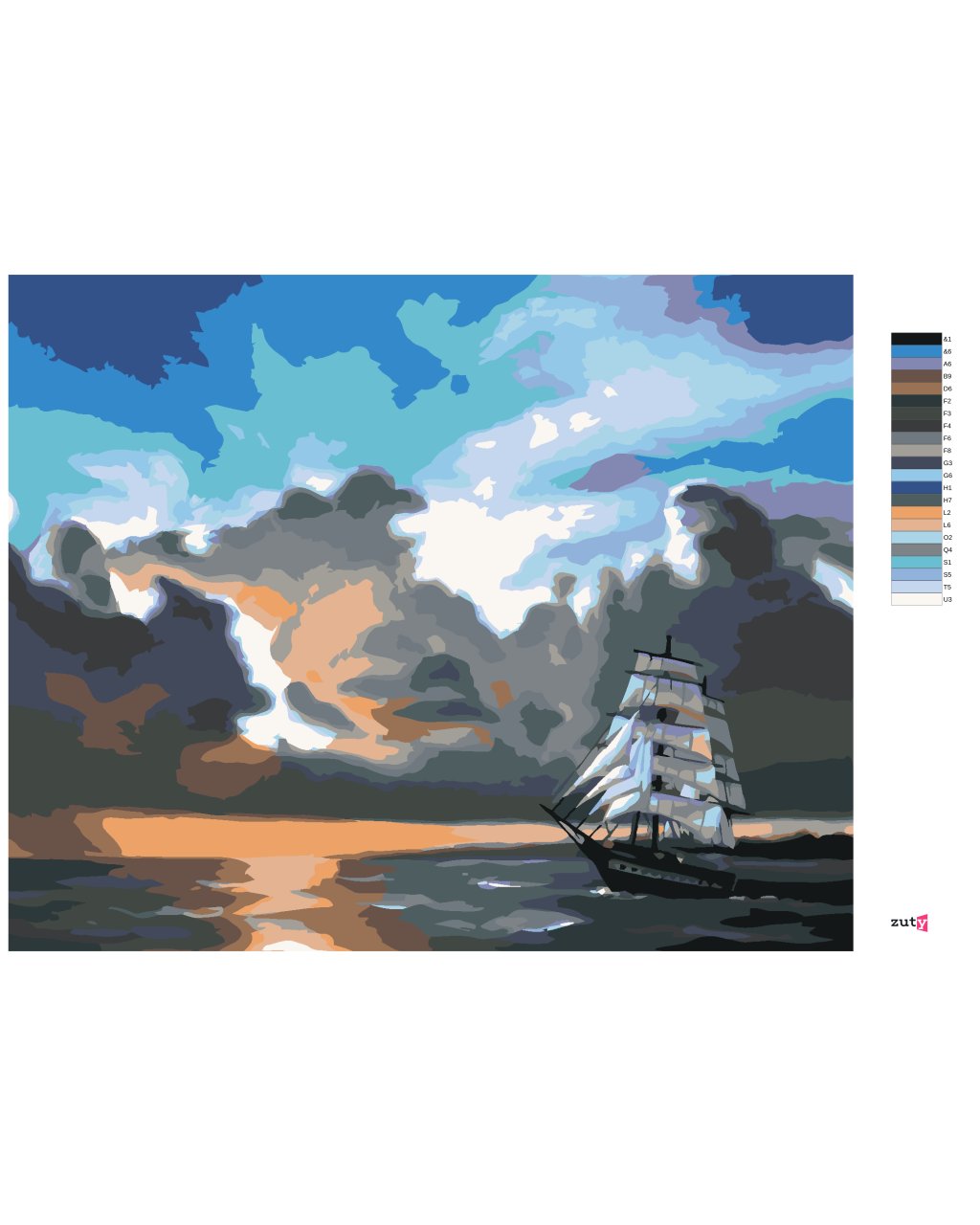 Malování podle čísel - PLACHETNICE NA MOŘI PO SOUMRAKU (D. RUSTY RUST)