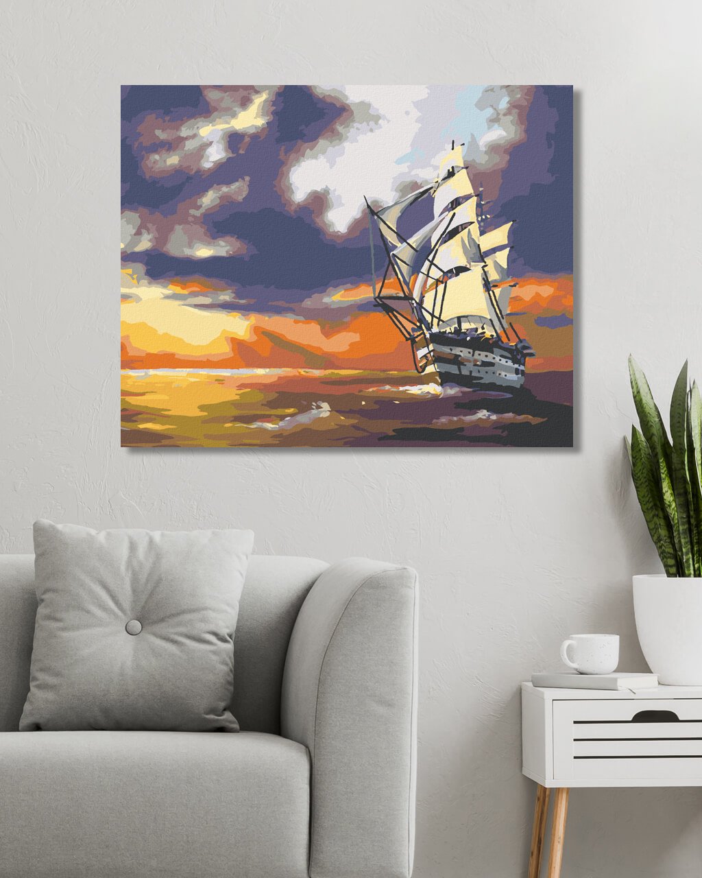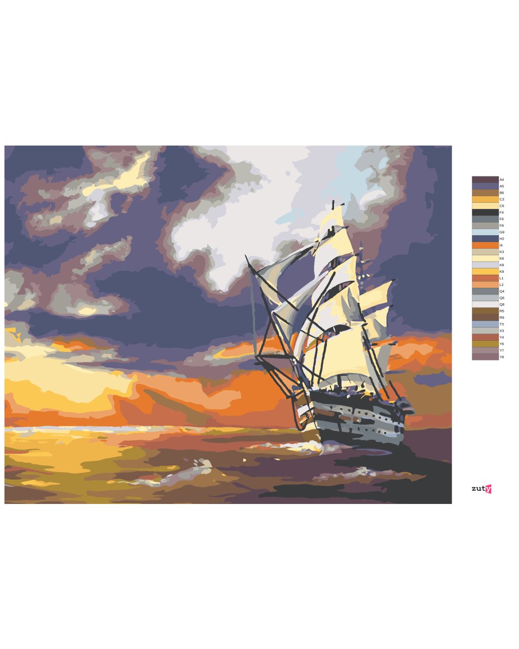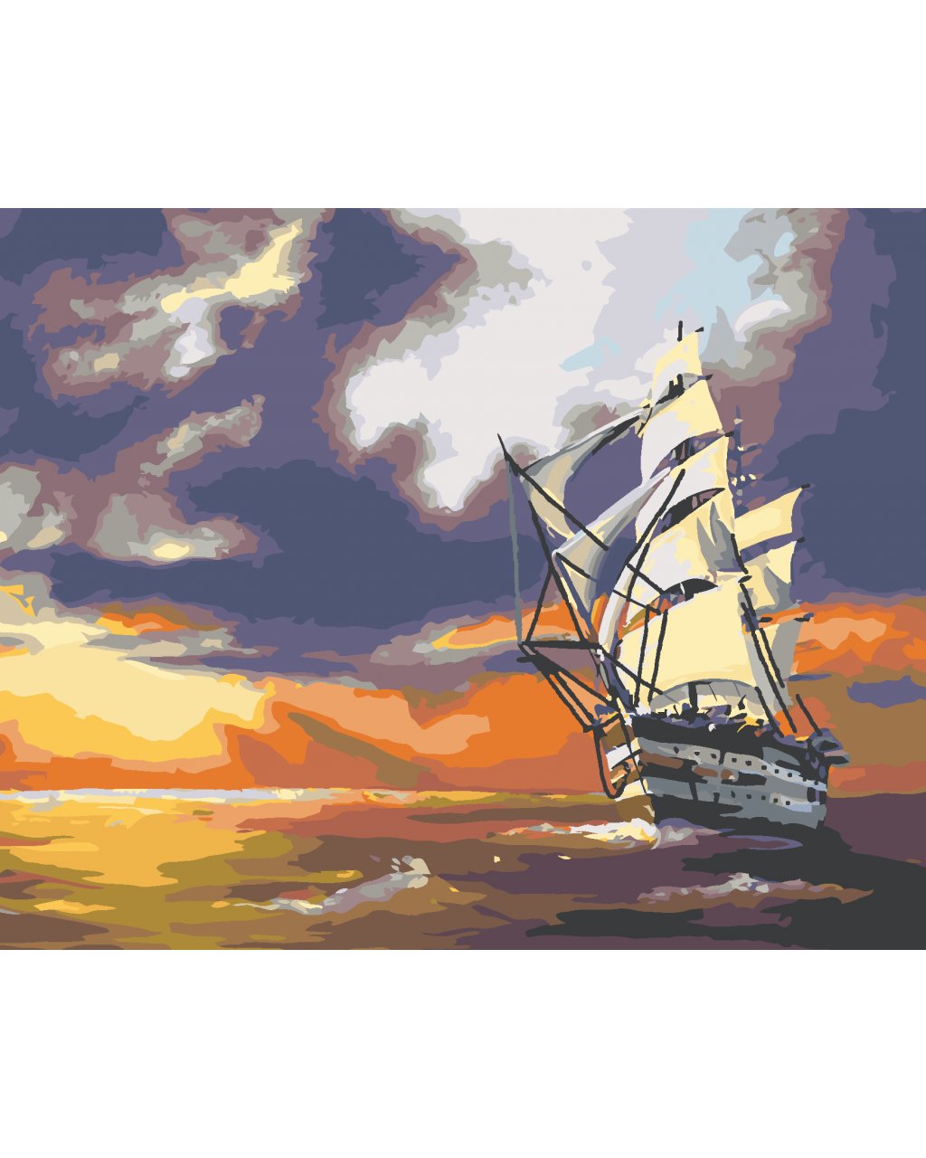 Malování podle čísel - PLACHETNICE PLUJÍCÍ NA MOŘI A ZÁPAD SLUNCE (D. RUSTY RUST)
