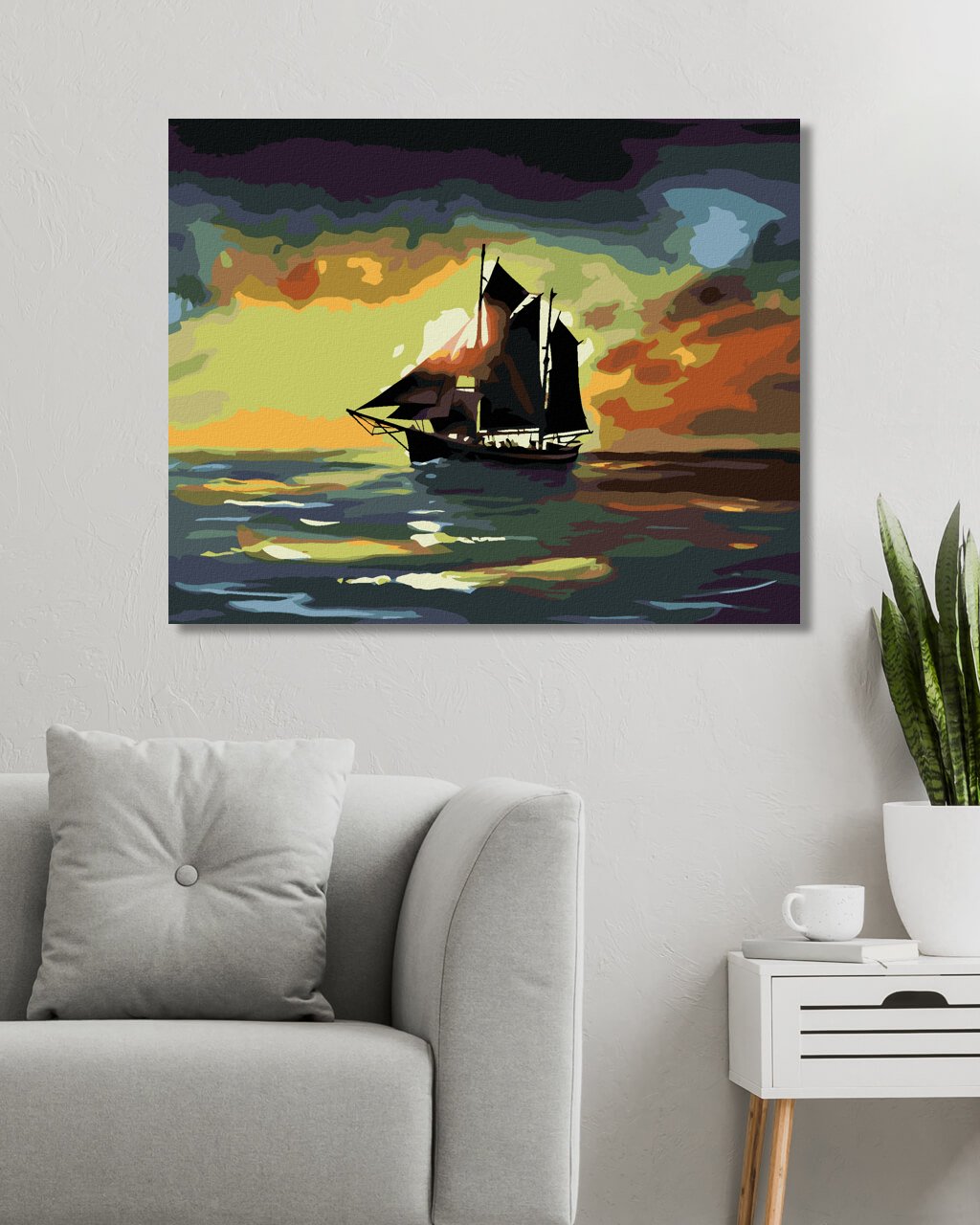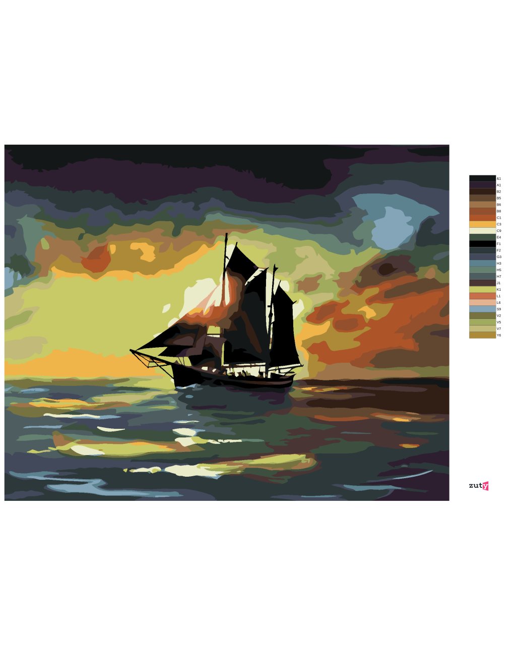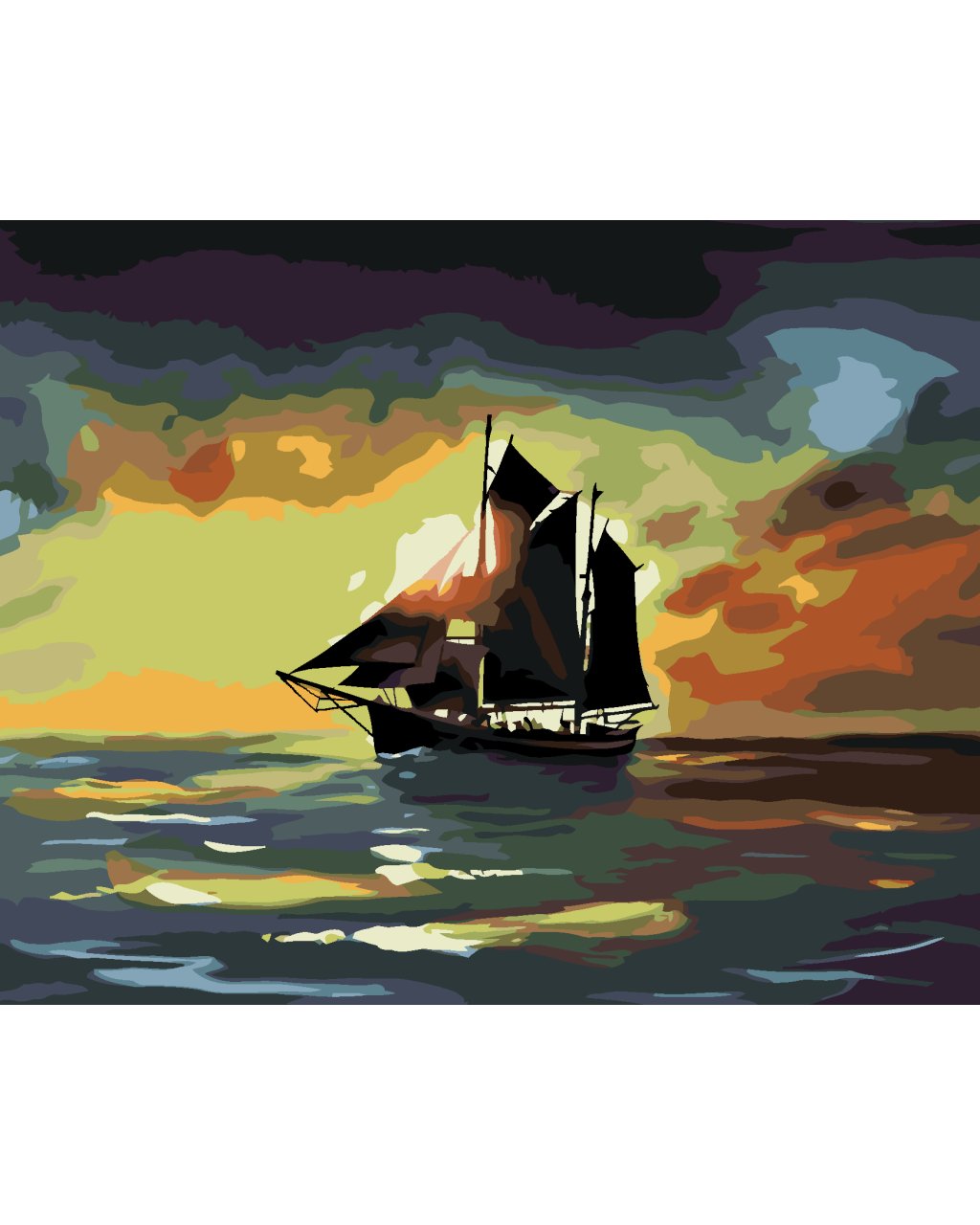 Malování podle čísel - PLACHETNICE V ZÁPADU SLUNCE (D. RUSTY RUST)
