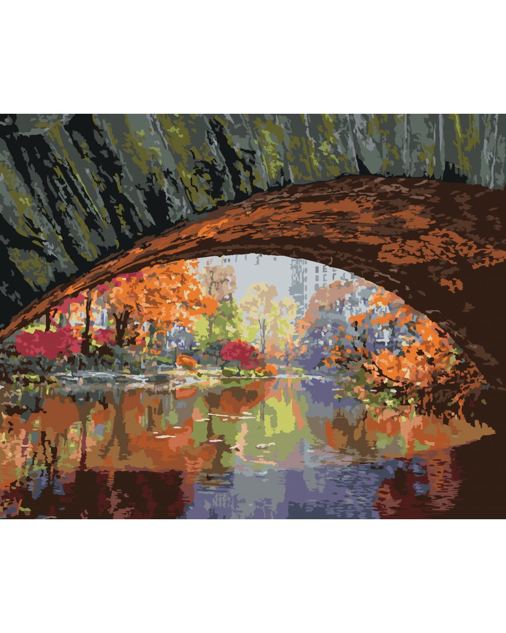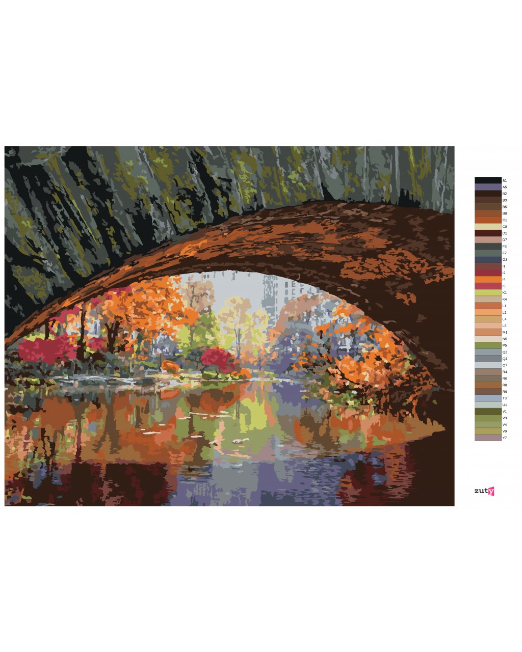 Malování podle čísel - PODZIMNÍ STROMY A MOST (TED DAVIS)
