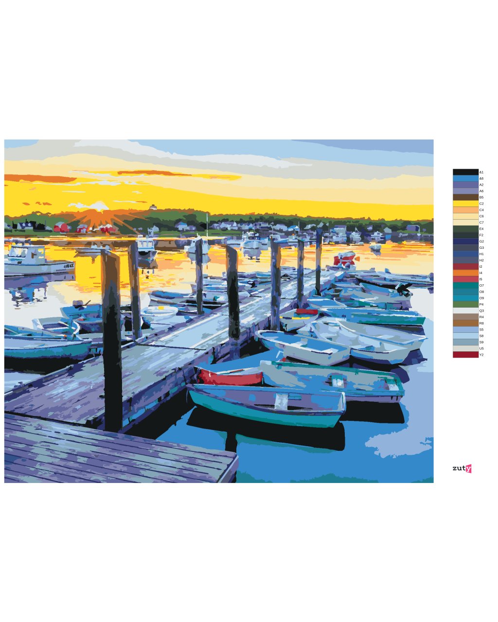 Malování podle čísel - PŘÍSTAV A ZÁPAD SLUNCE (TED DAVIS)