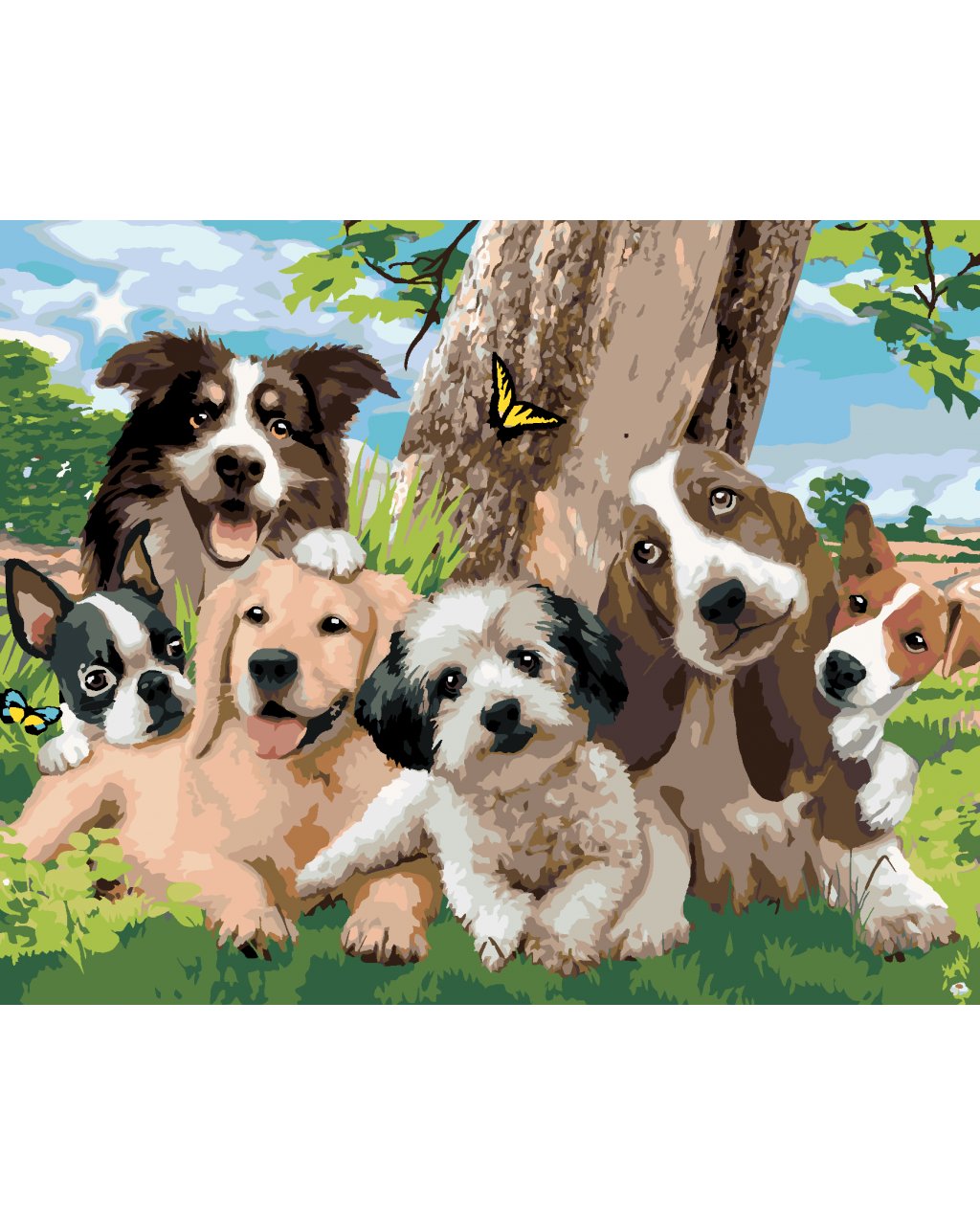 Malování podle čísel - PSI U STROMU NA LOUCE (HOWARD ROBINSON)