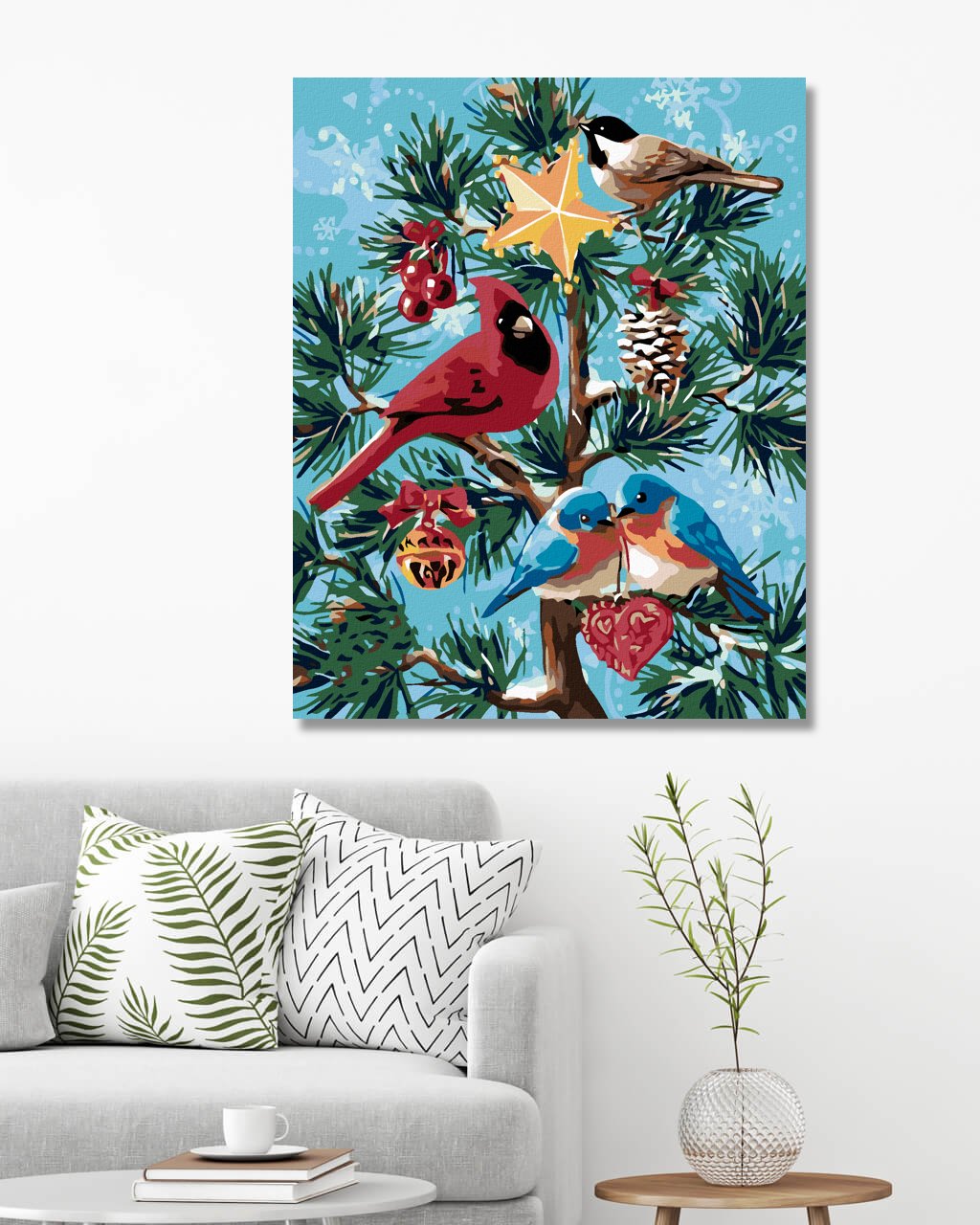 Malování podle čísel - PTÁČCI A VÁNOČNÍ STROMEK