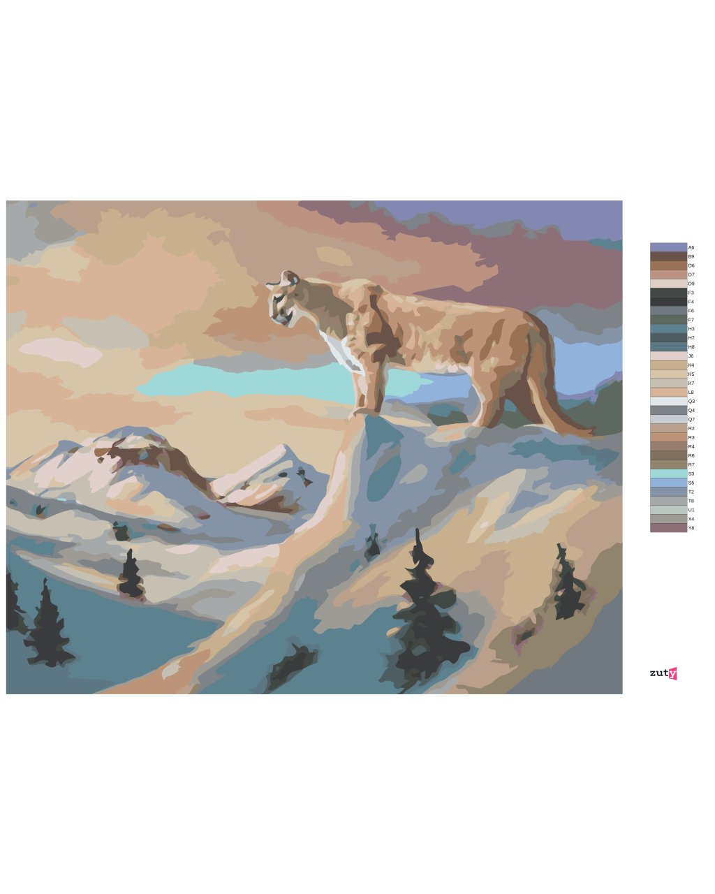 Malování podle čísel - PUMA NA SKÁLE A ZASNĚŽENÉ HORY (D. RUSTY RUST)