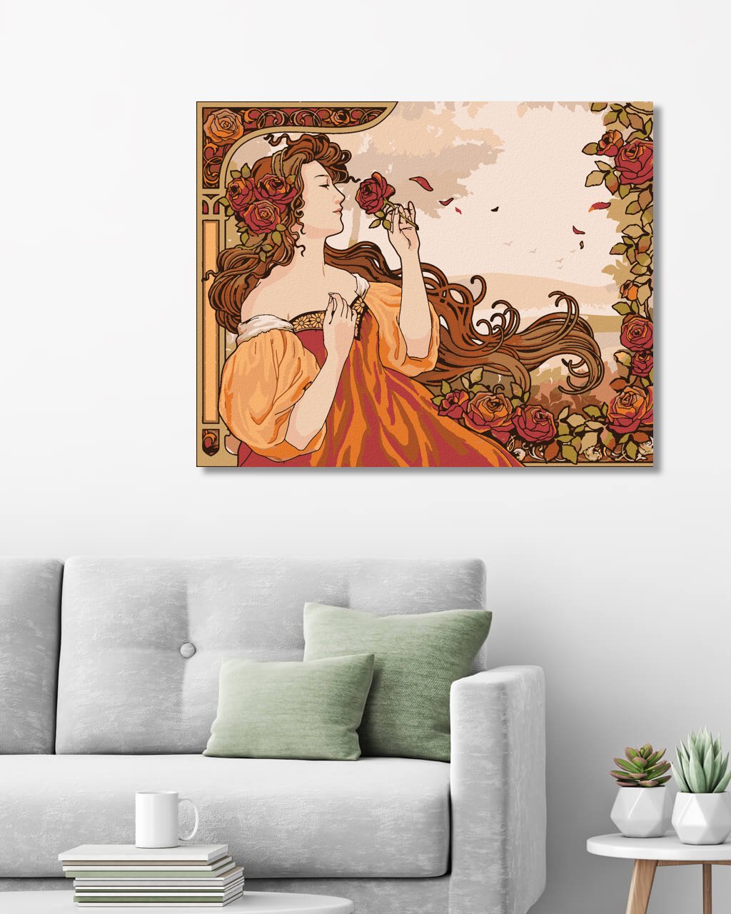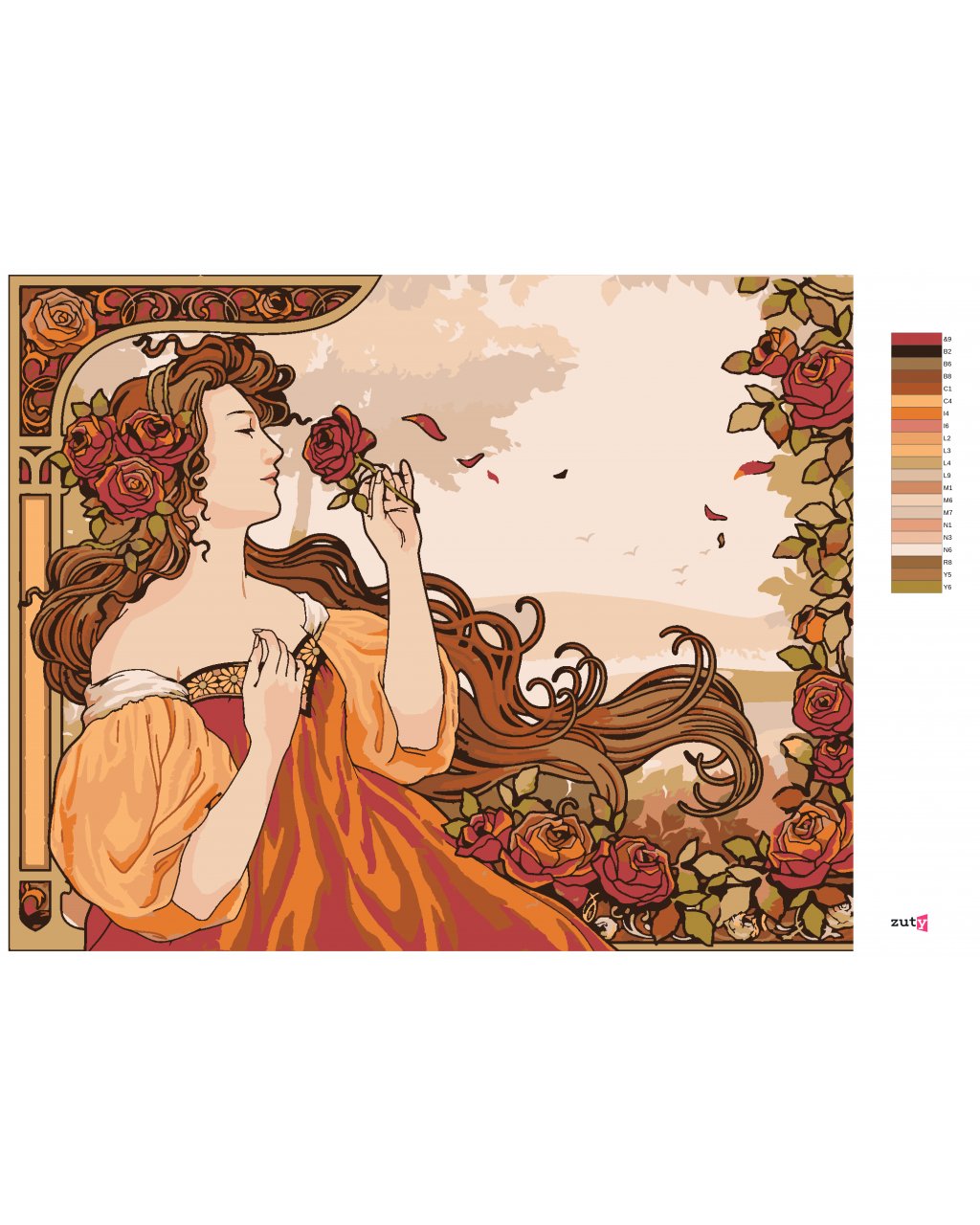 Malování podle čísel - REPRODUKCE ŽENA A RŮŽE (ALFONS MUCHA)
