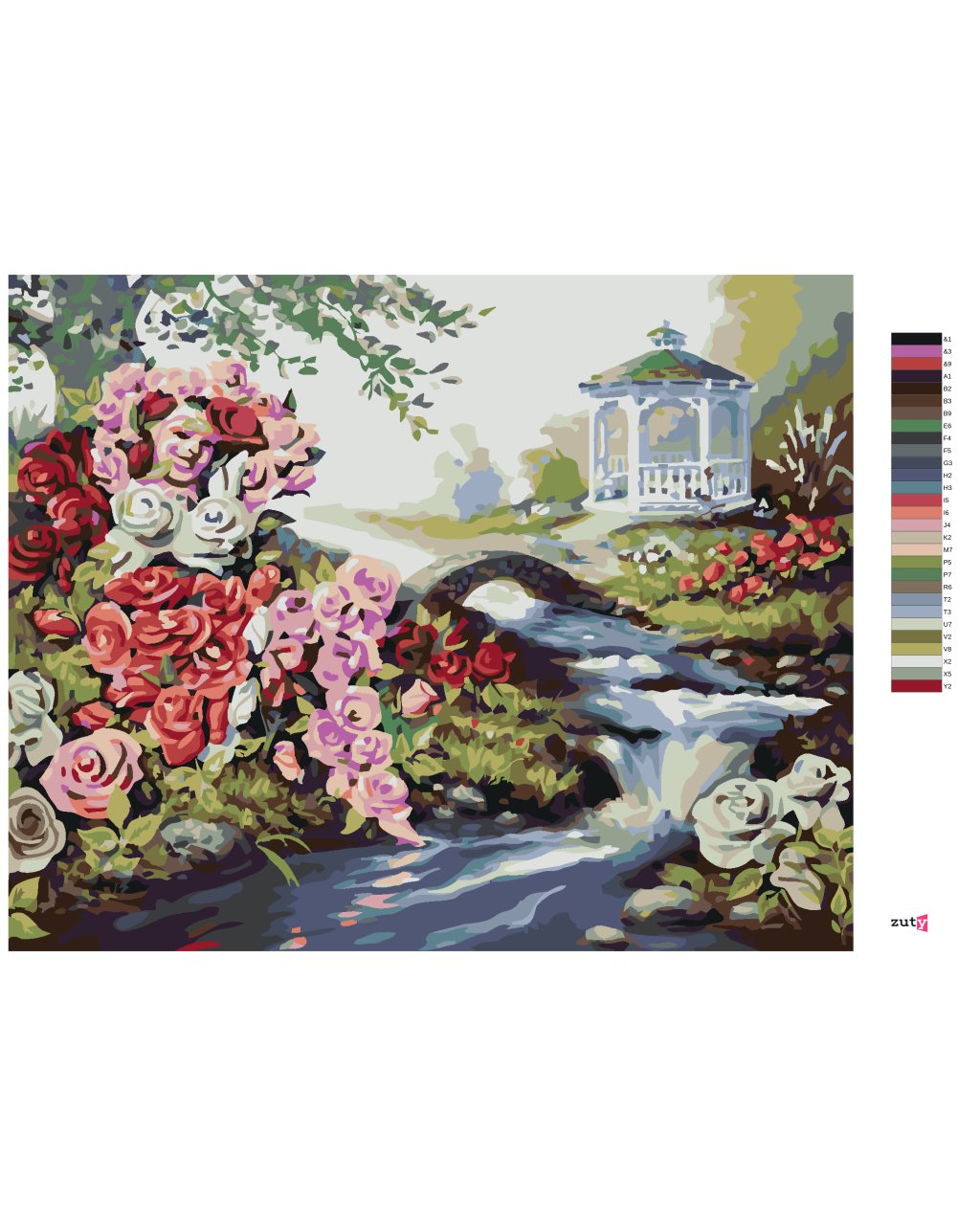 Malování podle čísel - RŮŽE U POTŮČKU A ALTÁNKU (D. RUSTY RUST)
