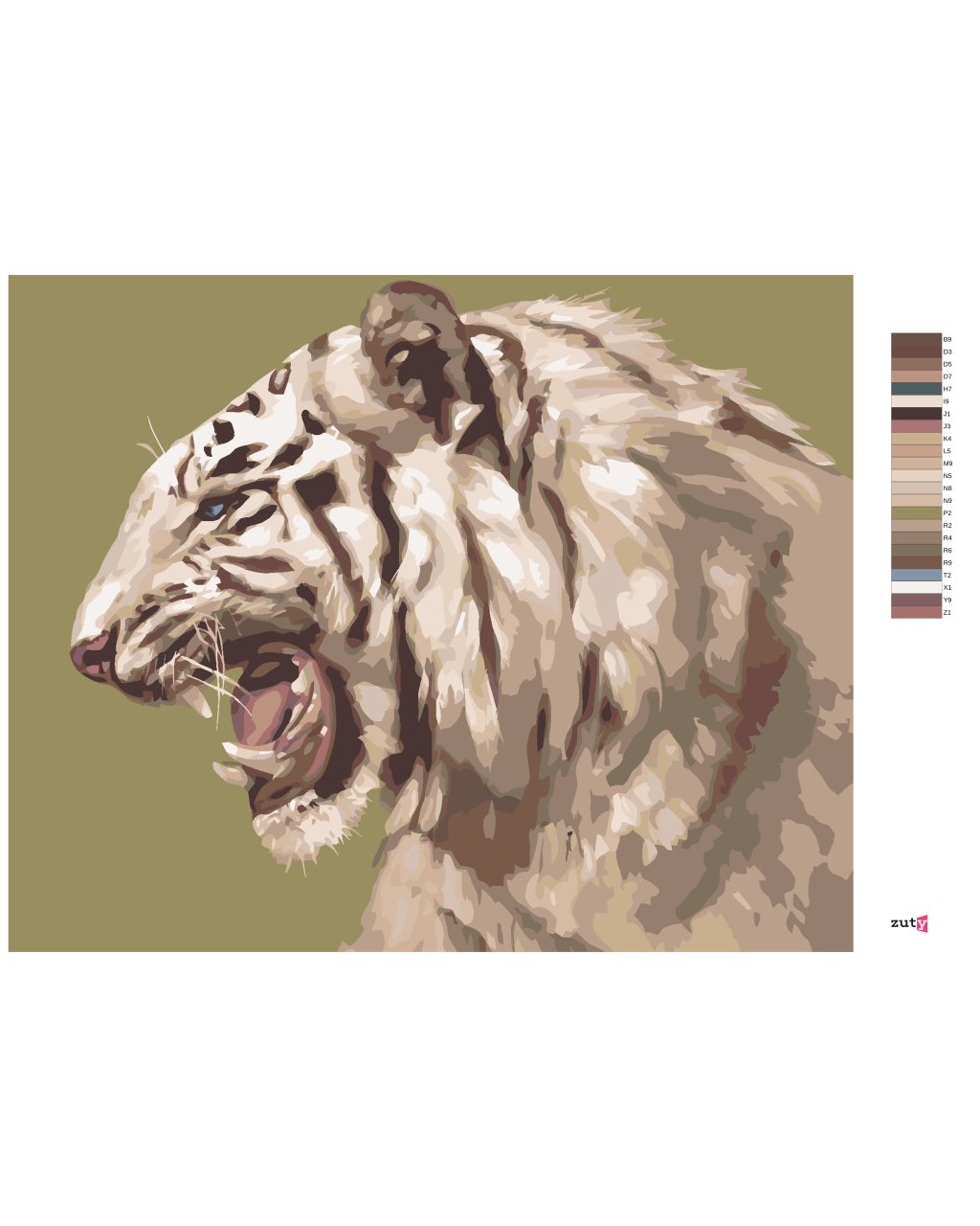 Malování podle čísel - ŘVOUCÍ BÍLÝ TYGR PORTRÉT (D. RUSTY RUST)