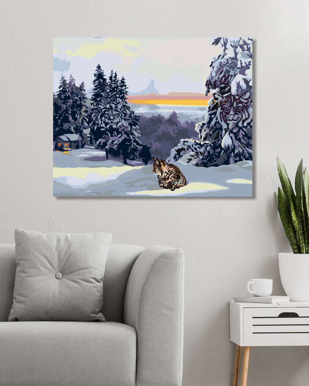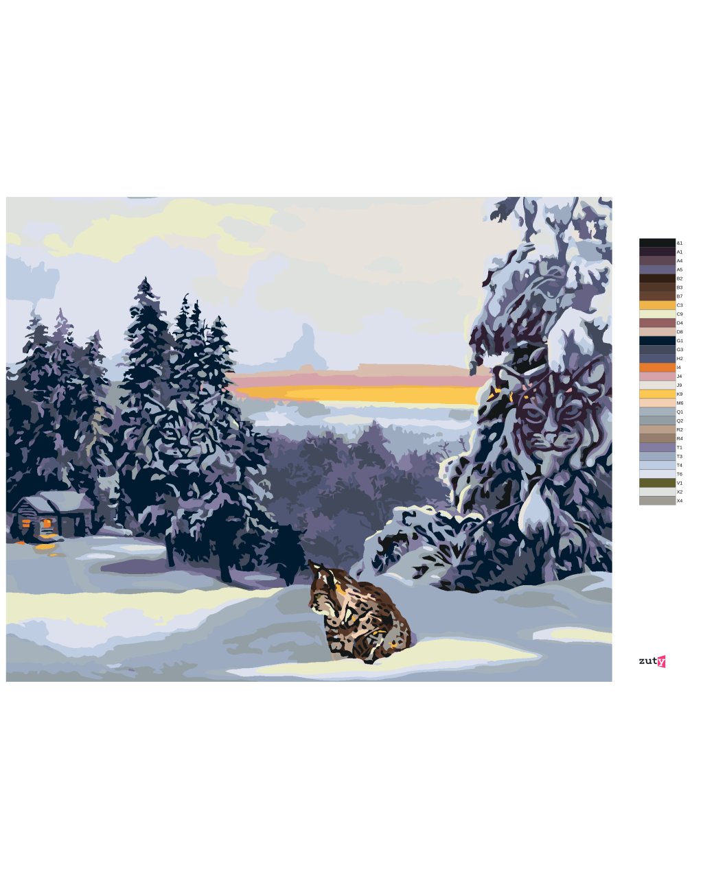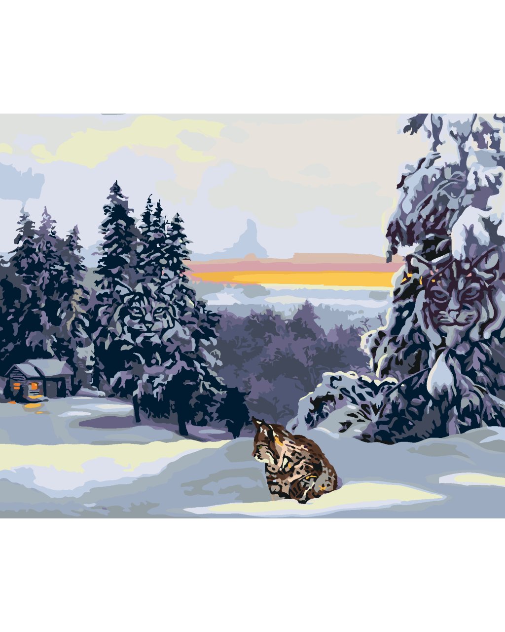 Malování podle čísel - RYS VE SNĚHU, CHATA A LES (D. RUSTY RUST)