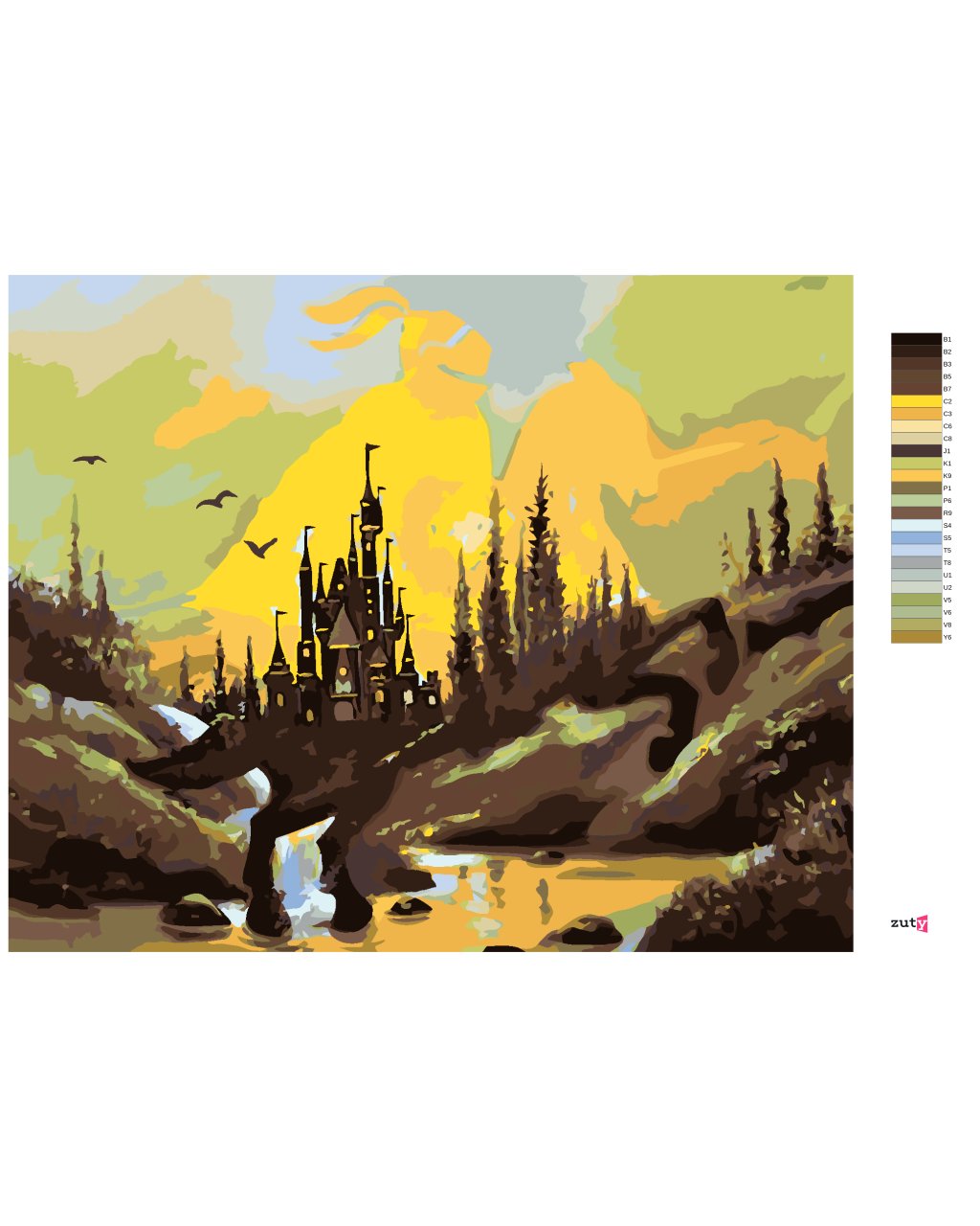 Malování podle čísel - RYTÍŘ NA KONI, HRAD A ZÁPAD SLUNCE (D. RUSTY RUST)