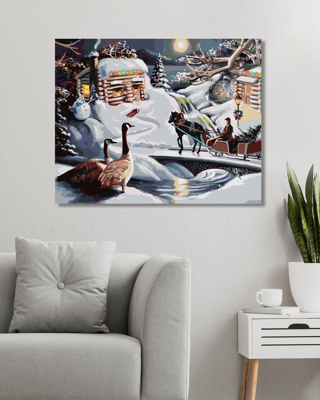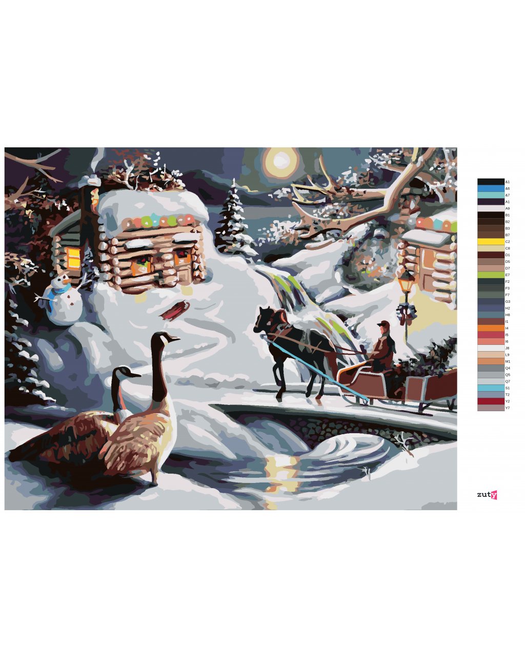 Malování podle čísel - SANTA, SNĚHULÁK, SÁNĚ A KACHNY V ZIMĚ (D. RUSTY RUST)