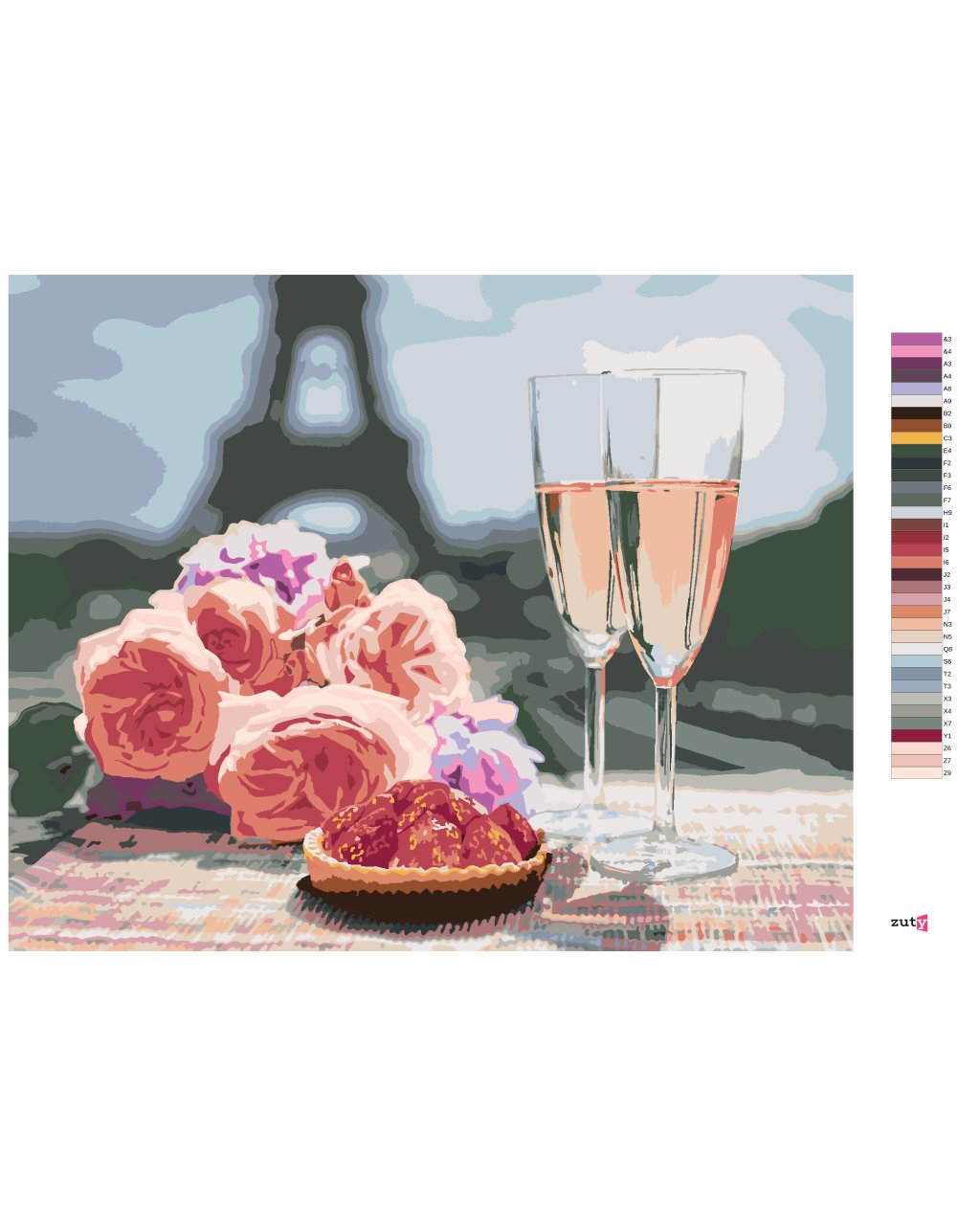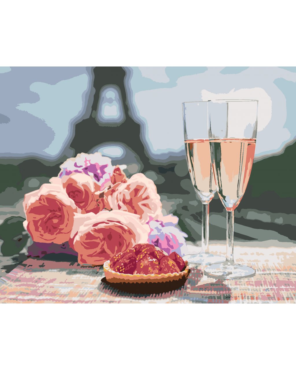 Malování podle čísel - SKLENIČKY A RŮŽE V PAŘÍŽI A EIFFELOVA VĚŽ