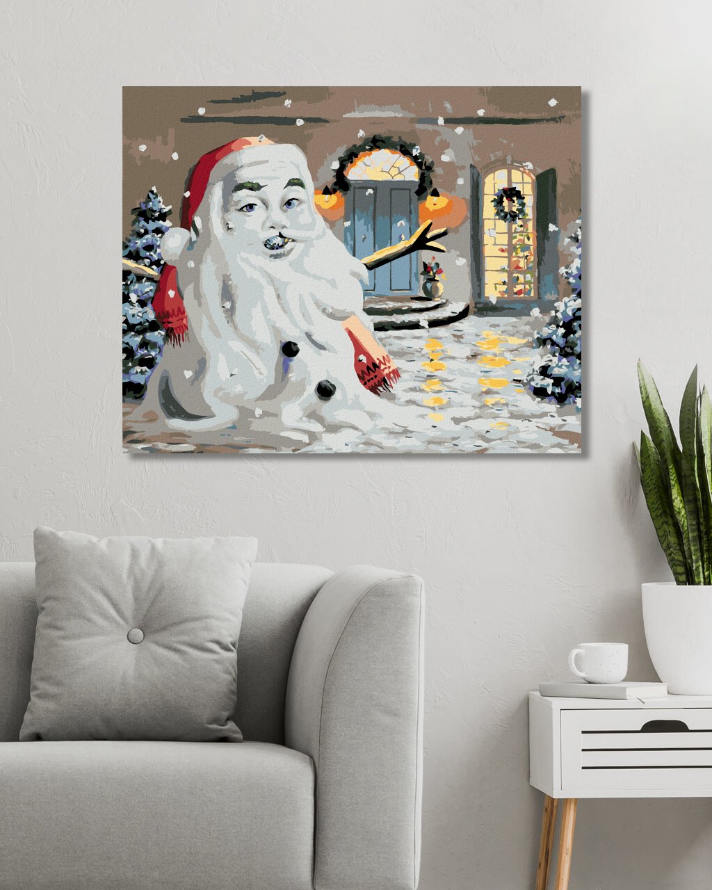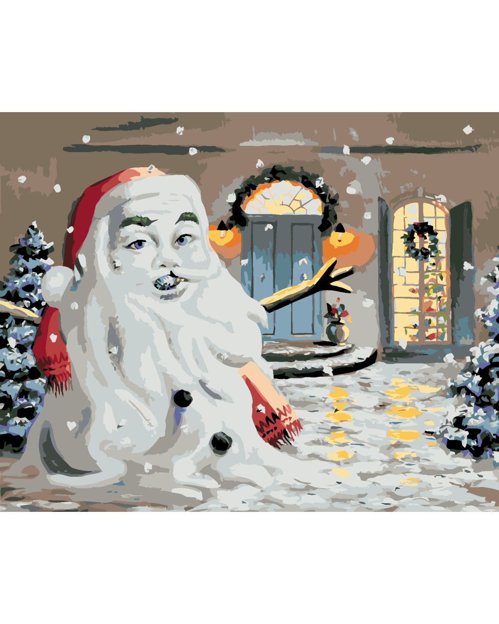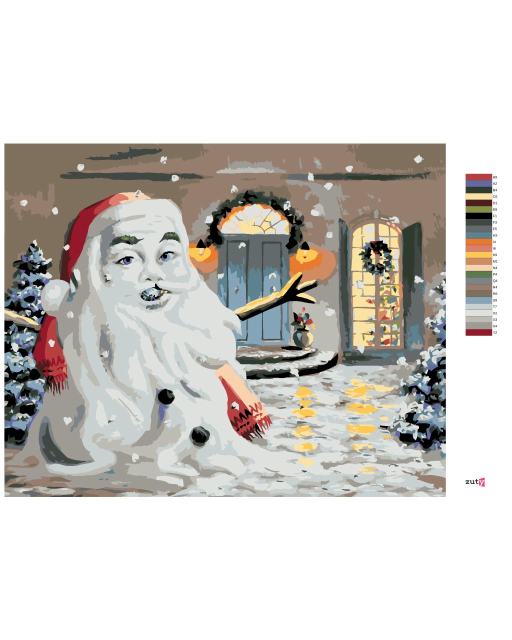 Malování podle čísel - SNĚHULÁK VE TVARU SANTY U DOMU (D. RUSTY RUST)