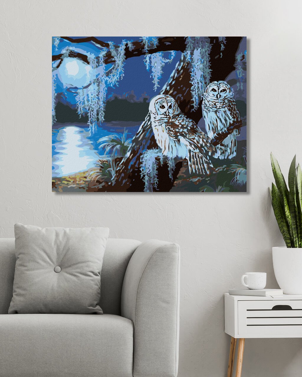 Malování podle čísel - SNĚŽNÁ SOVA V NOCI ZA ÚPLŇKU (D. RUSTY RUST)