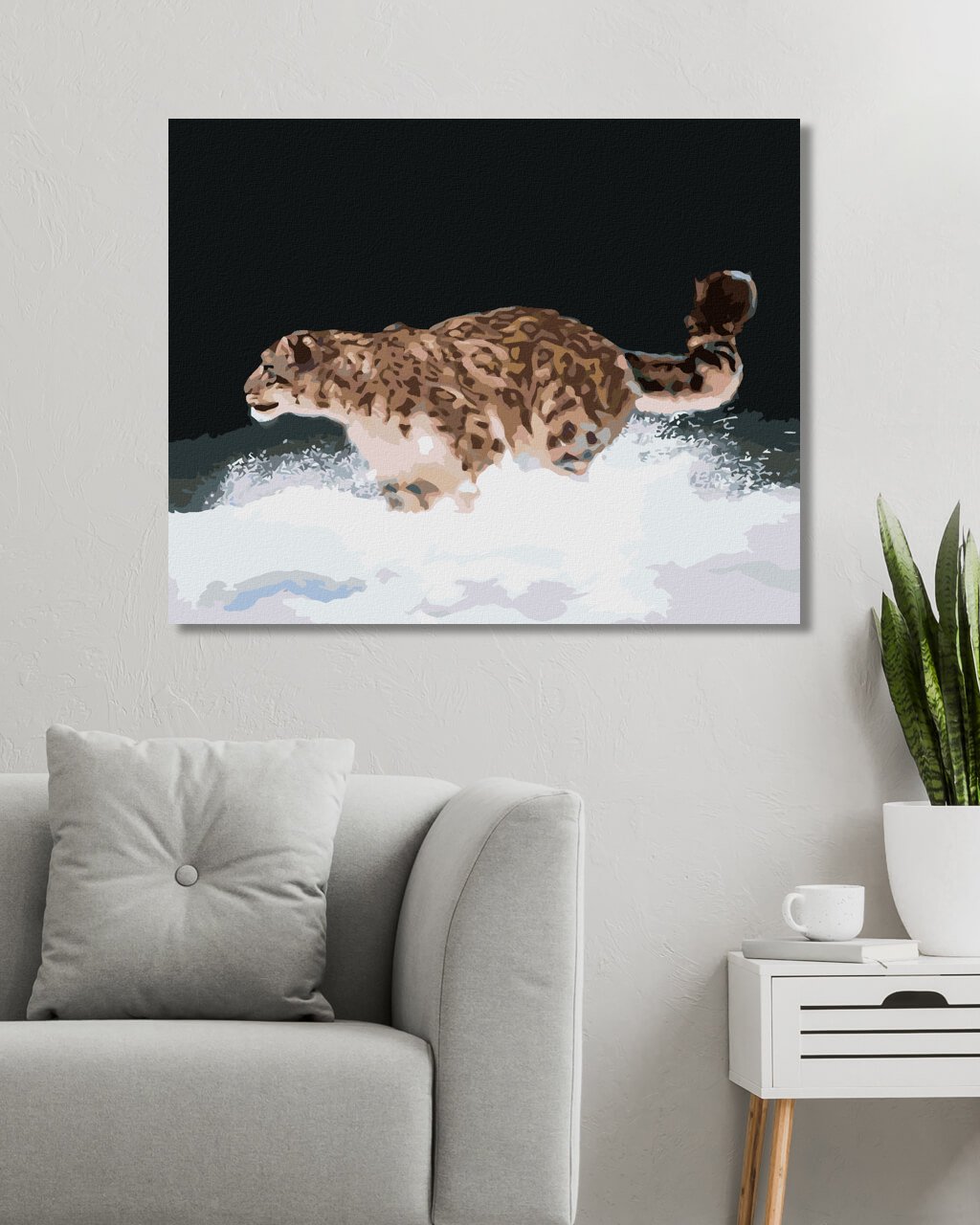 Malování podle čísel - SNĚŽNÝ LEOPARD V BĚHU VE SNĚHU (D. RUSTY RUST)