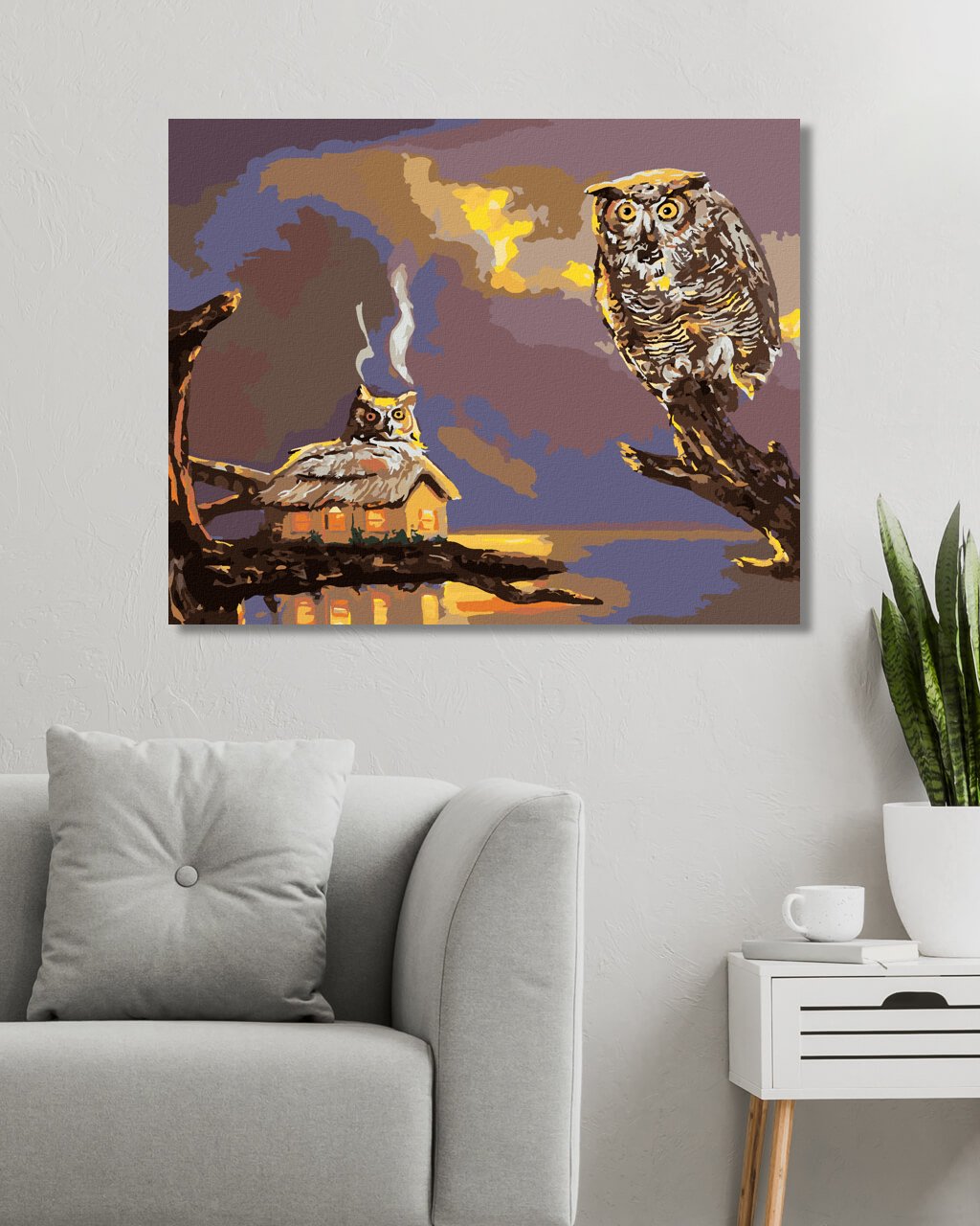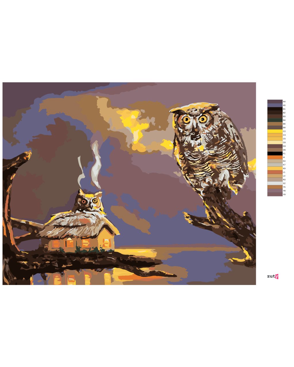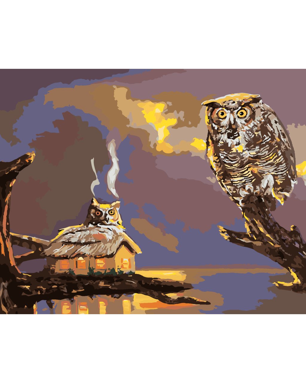 Malování podle čísel - SOVA A CHATA U VODY (D. RUSTY RUST)