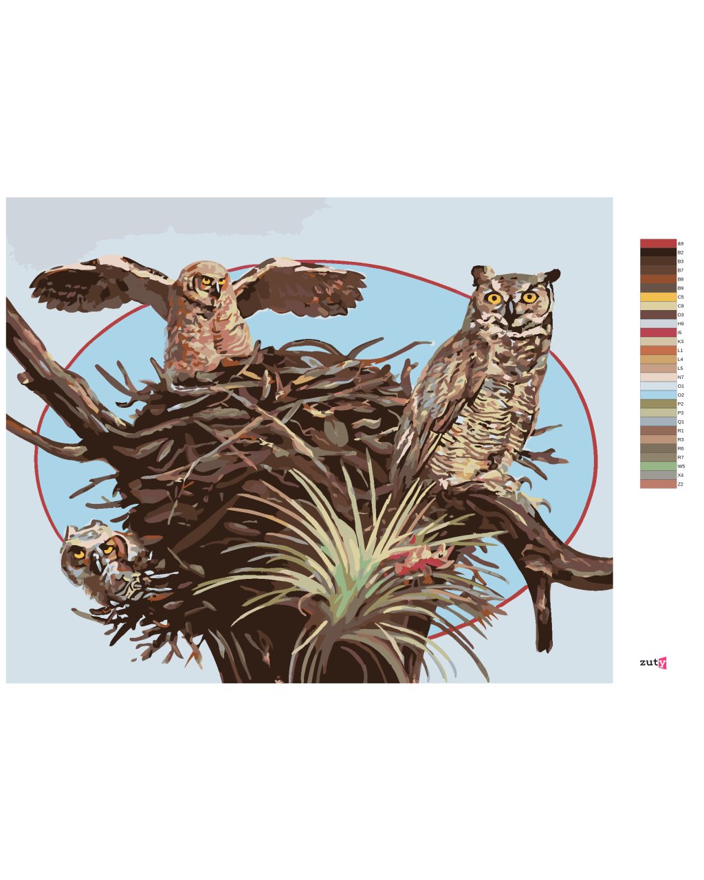 Malování podle čísel - SOVY A HNÍZDO (D. RUSTY RUST)