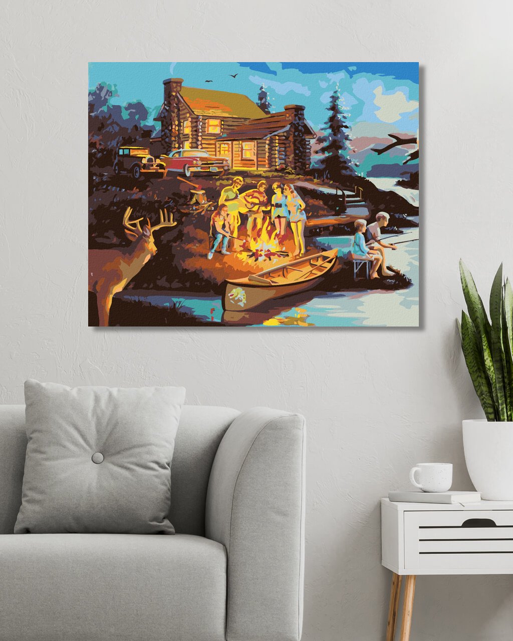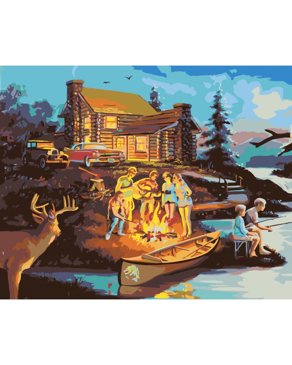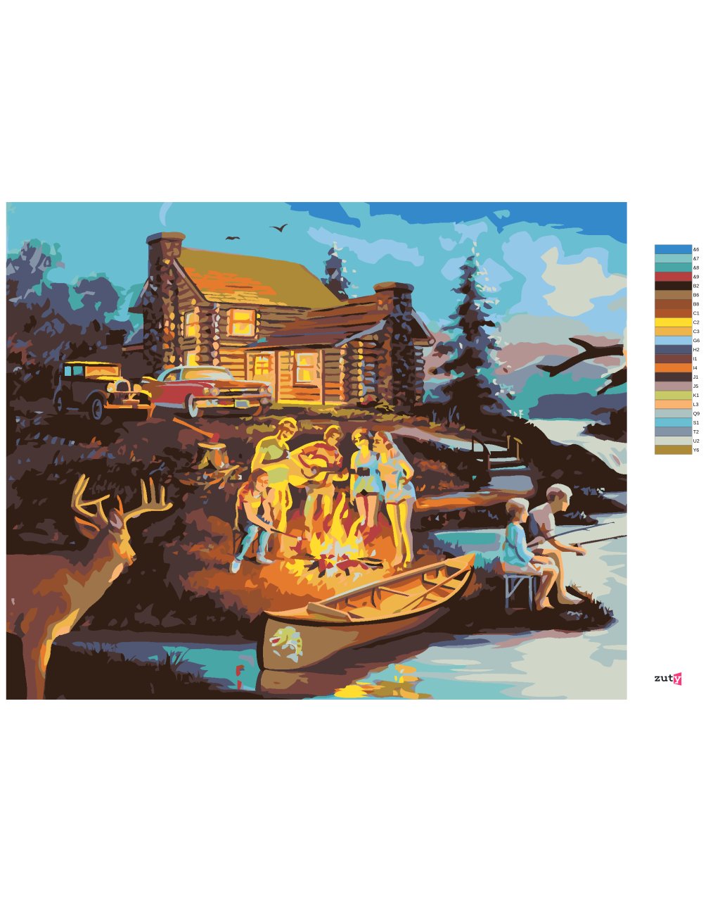 Malování podle čísel - TÁBORÁK U CHATY, JELEN A SOVA (D. RUSTY RUST)