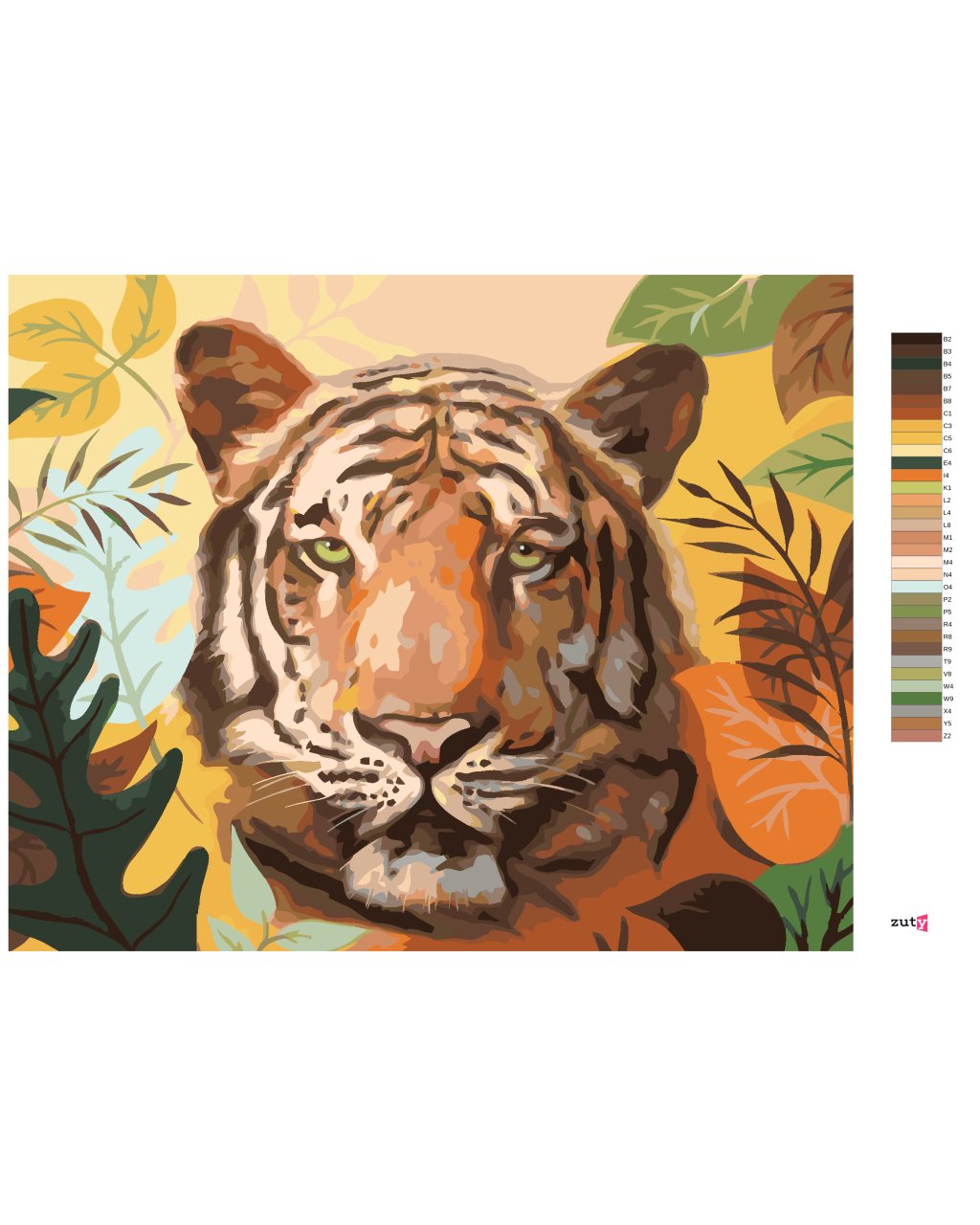 Malování podle čísel - TYGR A LISTY (D. RUSTY RUST)