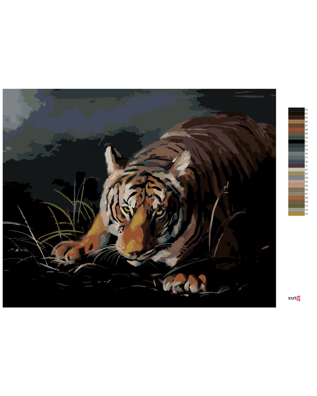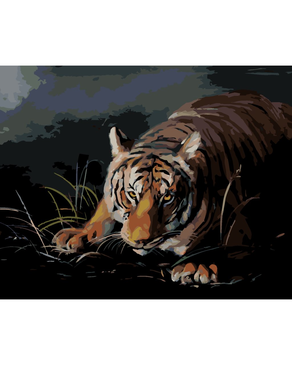 Malování podle čísel - TYGR ČÍHAJÍCÍ VE TMĚ (D. RUSTY RUST)
