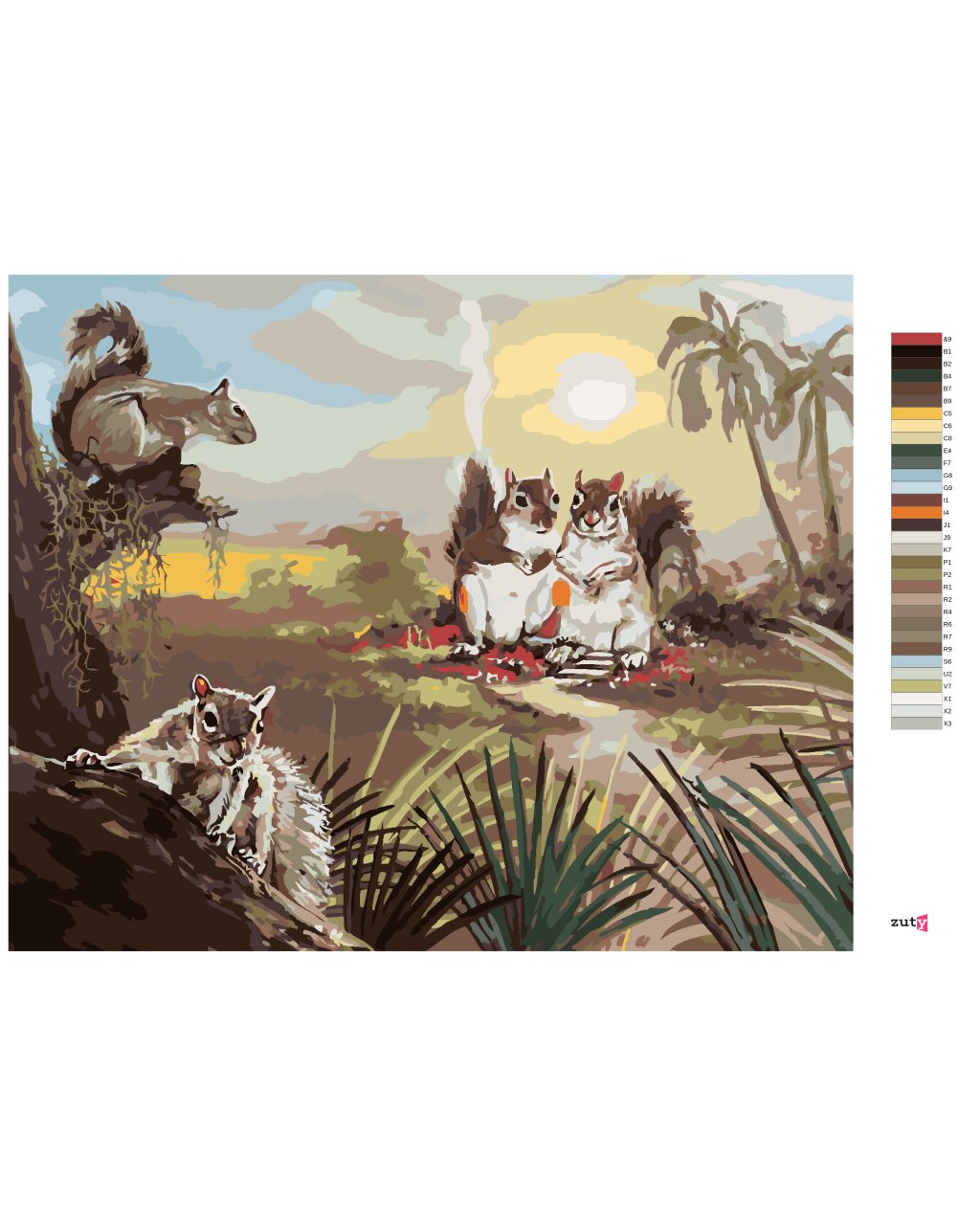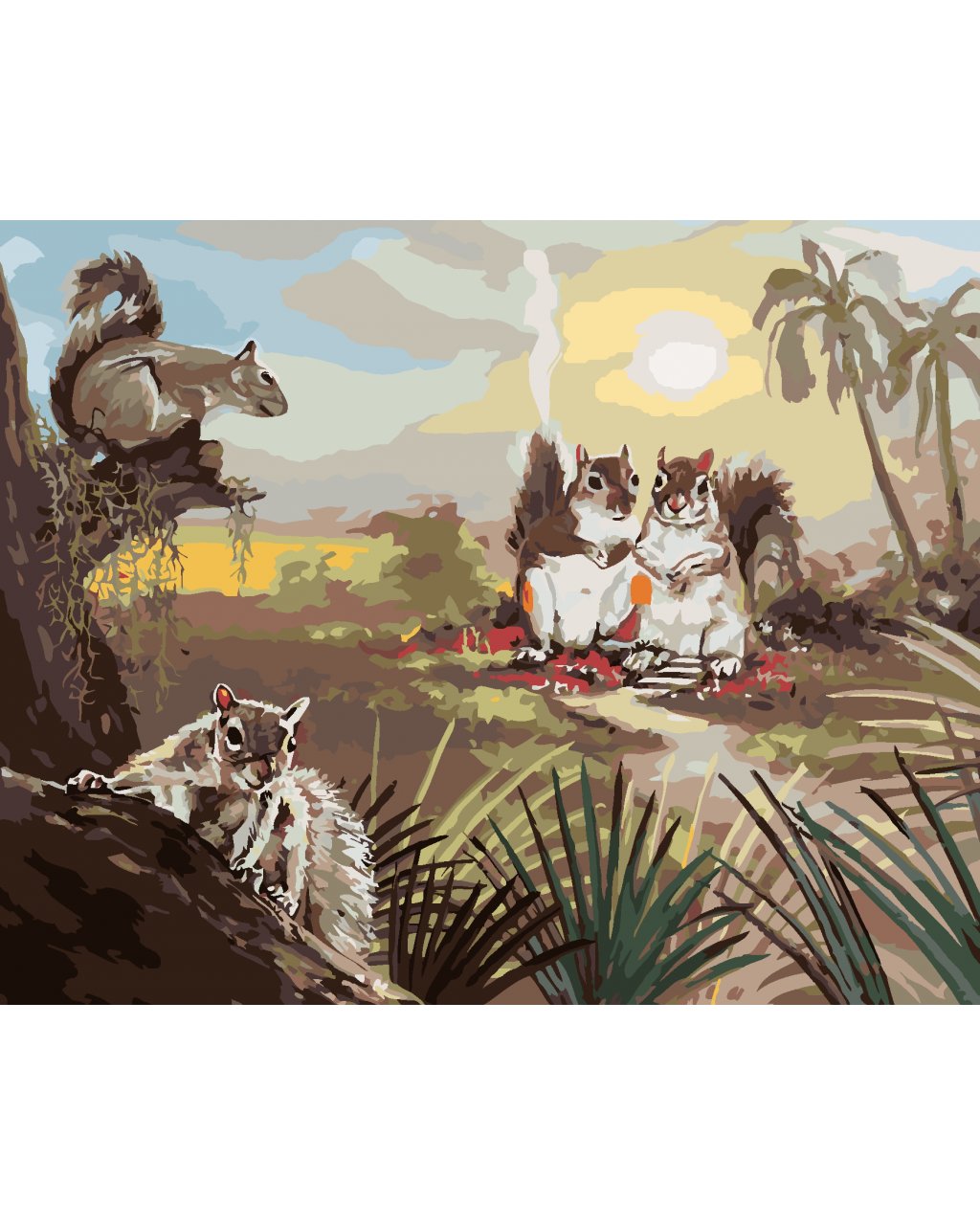 Malování podle čísel - VEVERKY A ZÁPAD SLUNCE (D. RUSTY RUST)