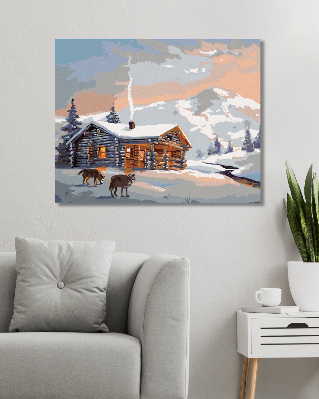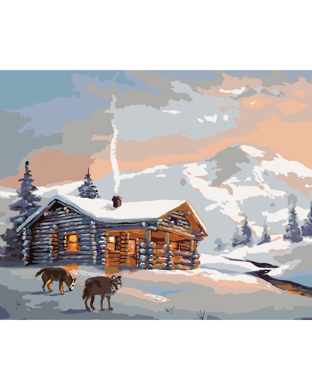 Malování podle čísel - VLCI A CHATA V ZIMĚ (D. RUSTY RUST)