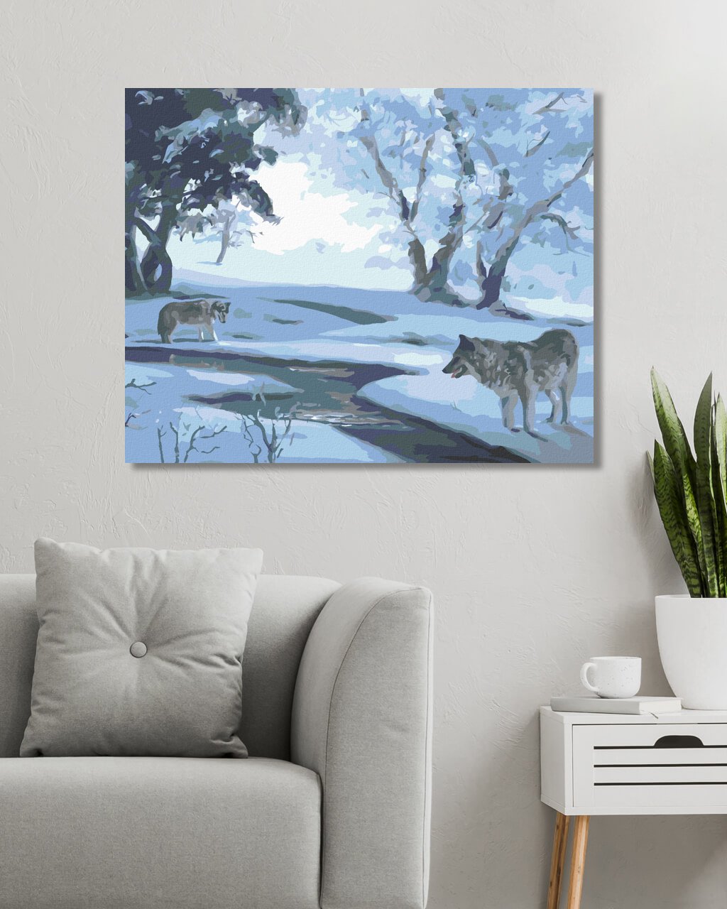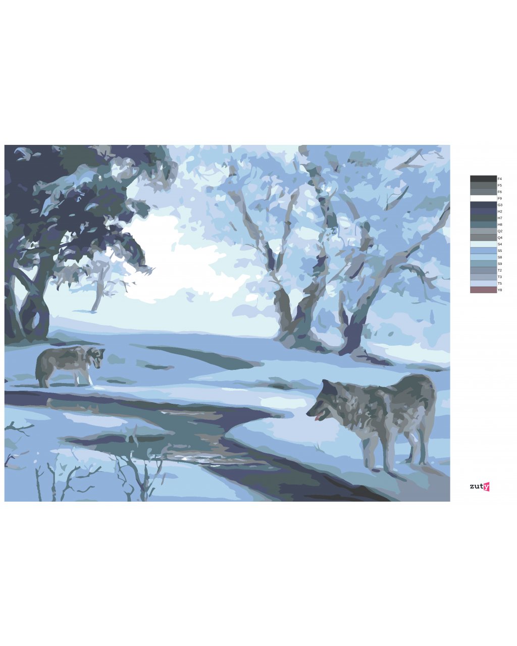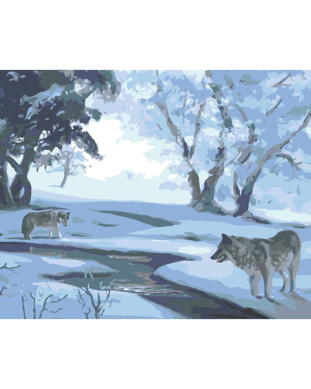 Malování podle čísel - VLCI U ŘEKY V ZIMĚ (D. RUSTY RUST)