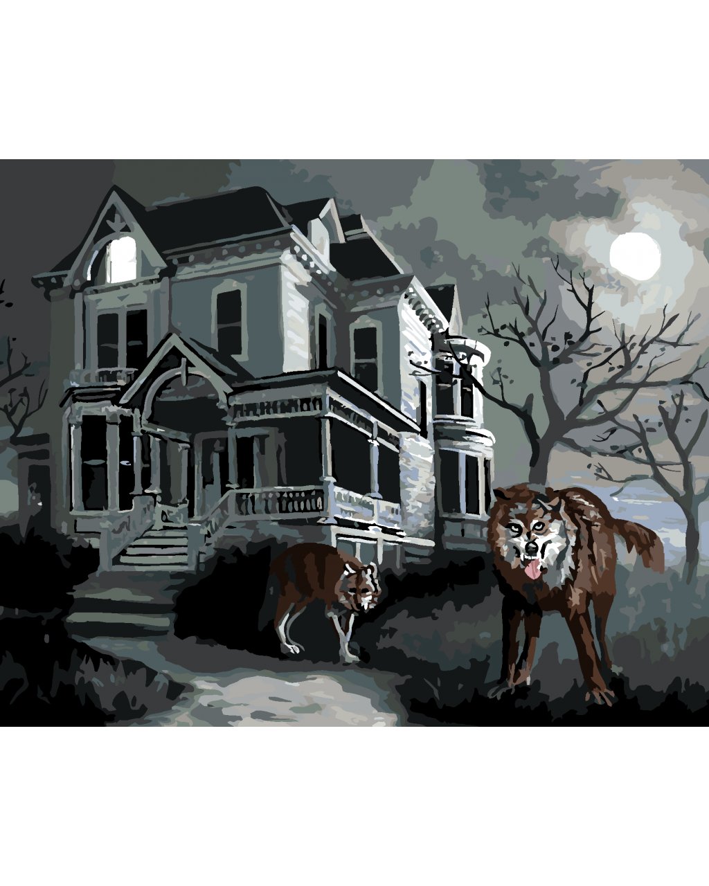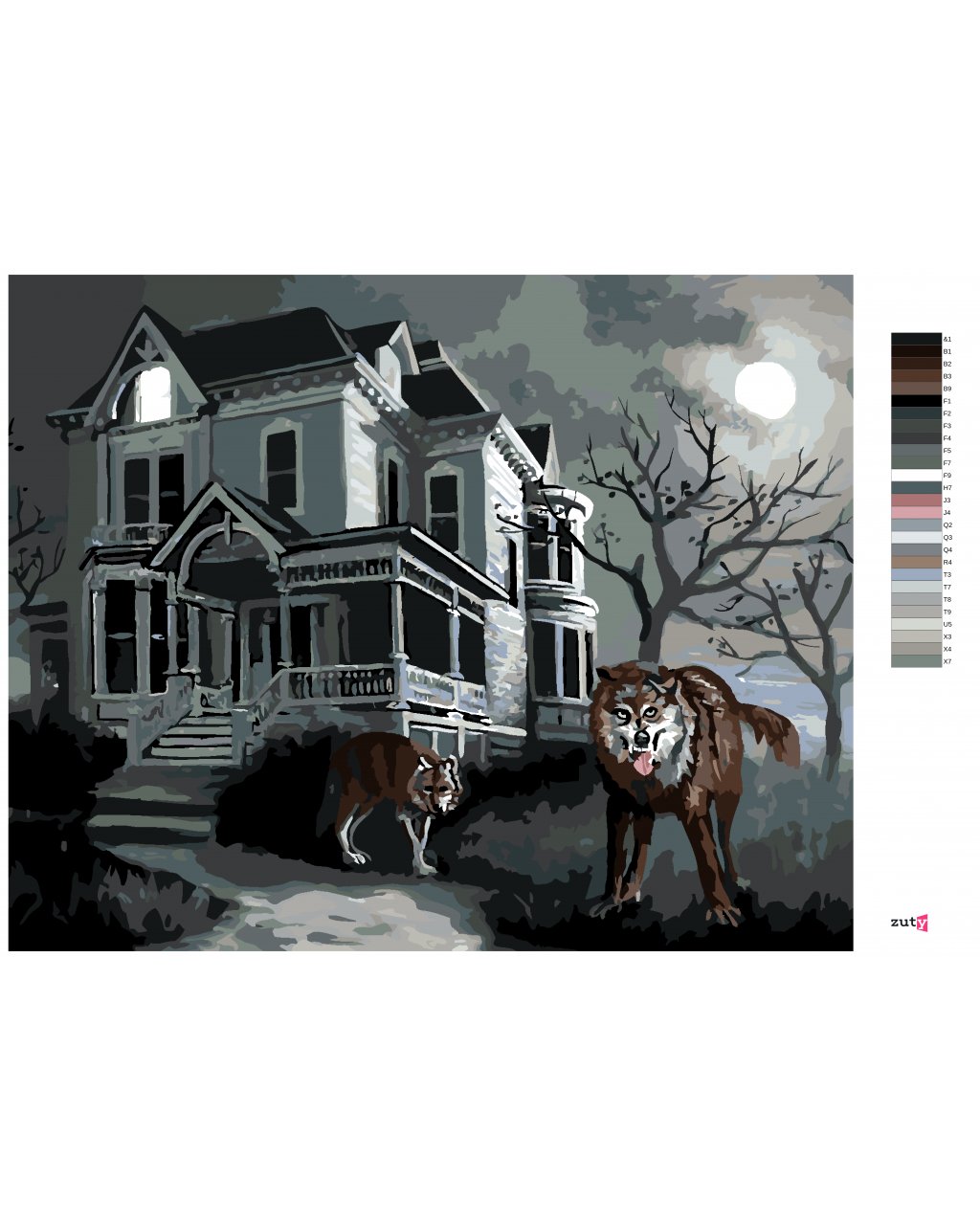 Malování podle čísel - VLK A STRAŠIDELNÝ DŮM ZA ÚPLŇKU (D. RUSTY RUST)