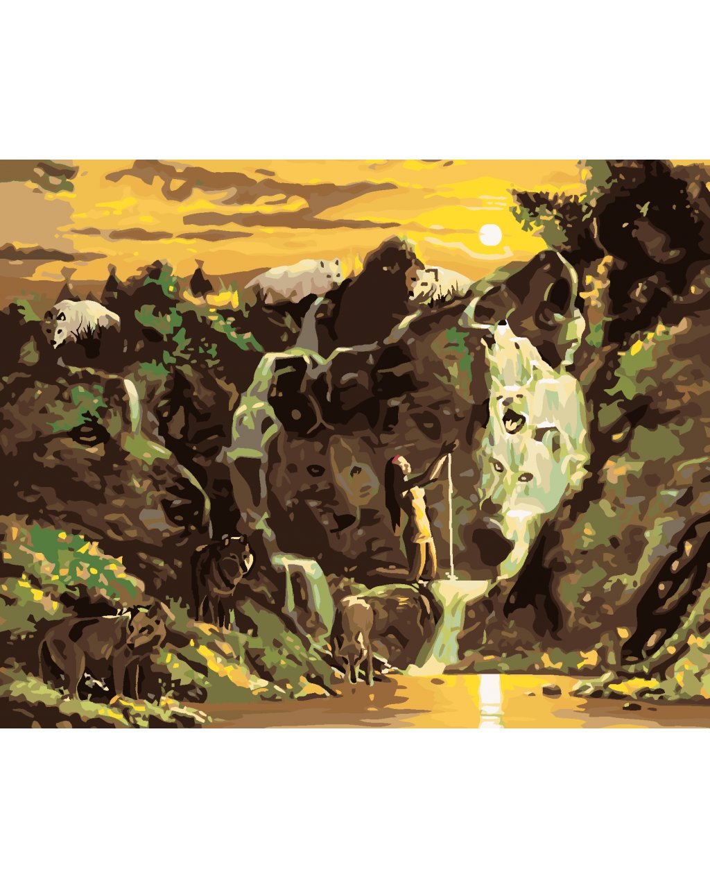 Malování podle čísel - VODOPÁD A VLK (D. RUSTY RUST)