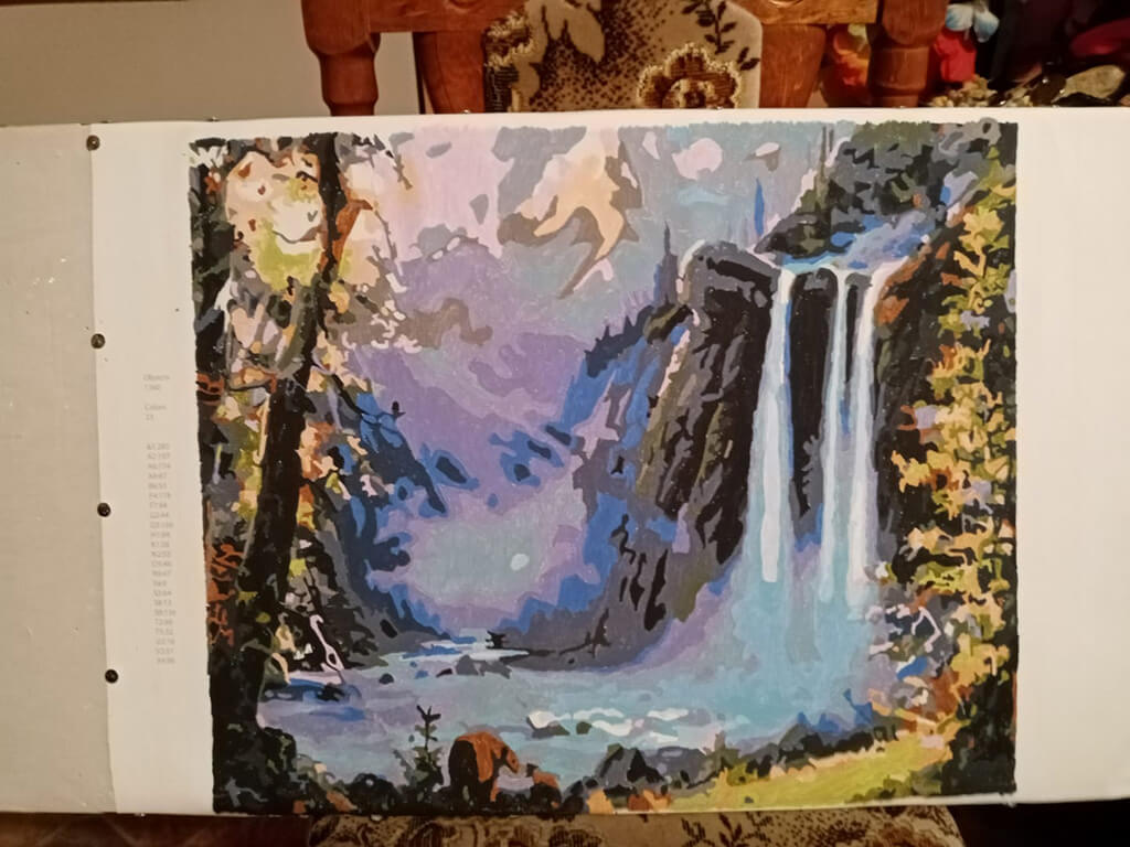 Malování podle čísel - VODOPÁD PŘI ZÁPADU SLUNCE