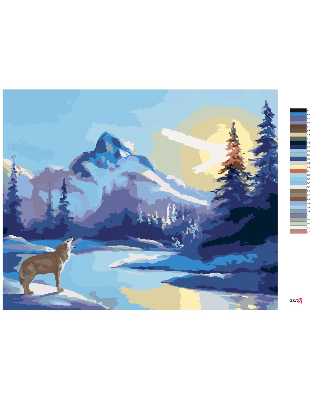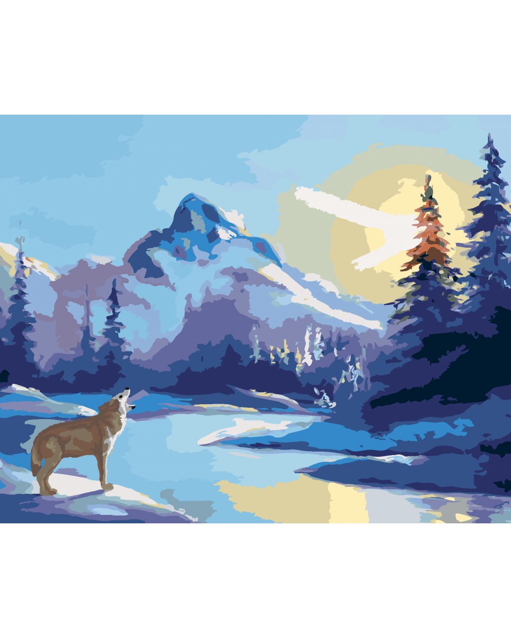 Malování podle čísel - VYJÍCÍ VLK, SLUNCE A HORY (D. RUSTY RUST)
