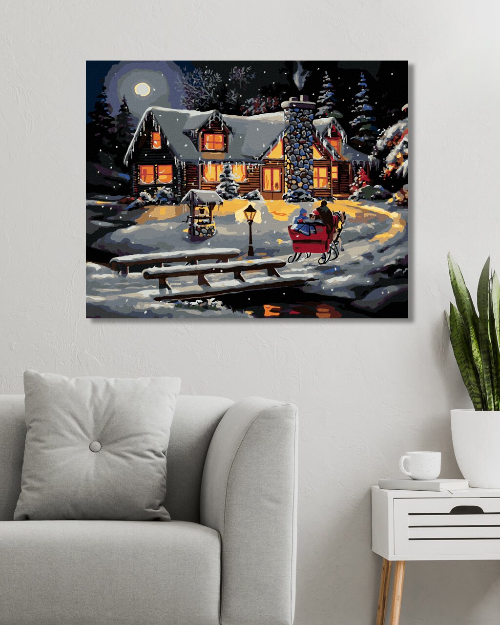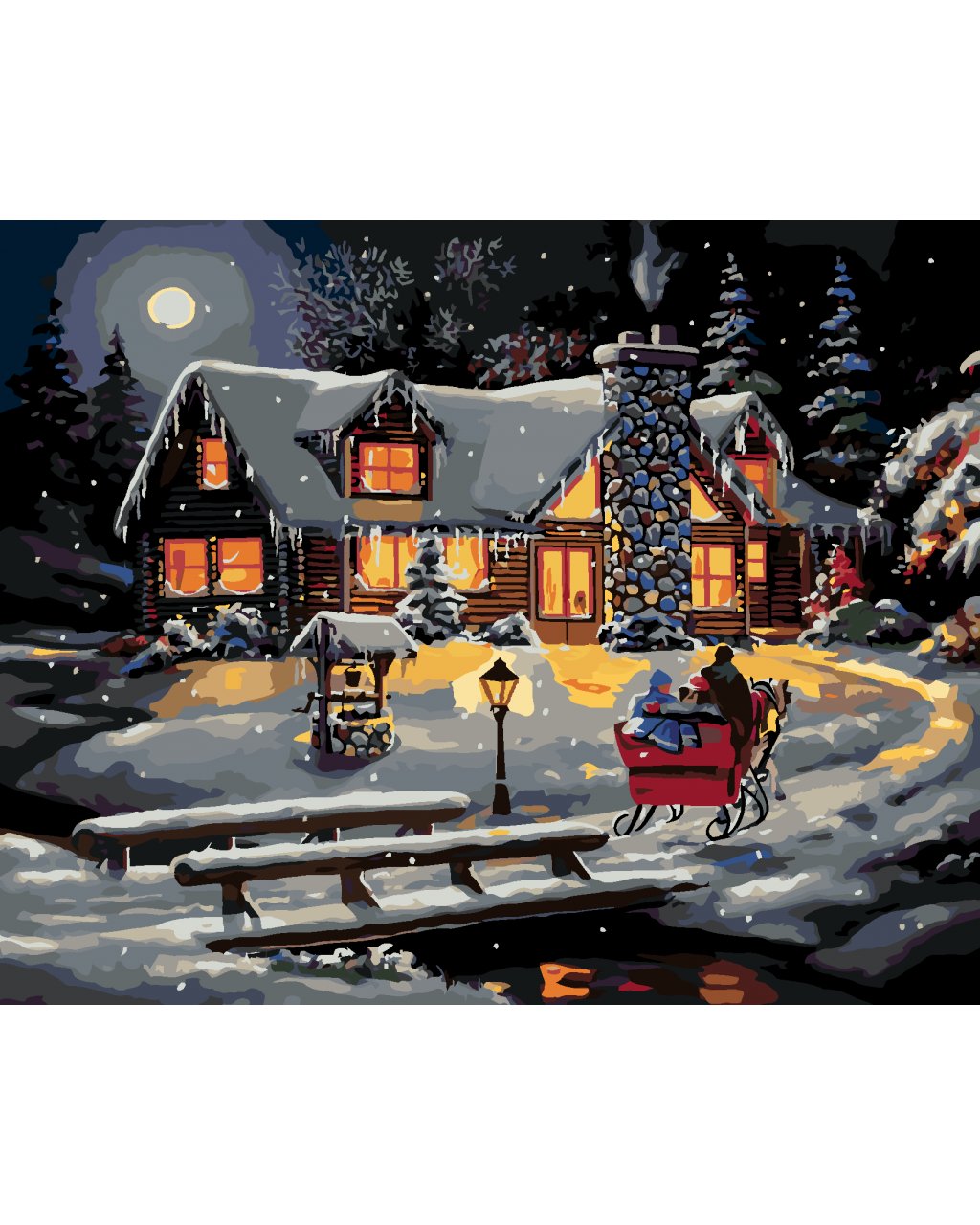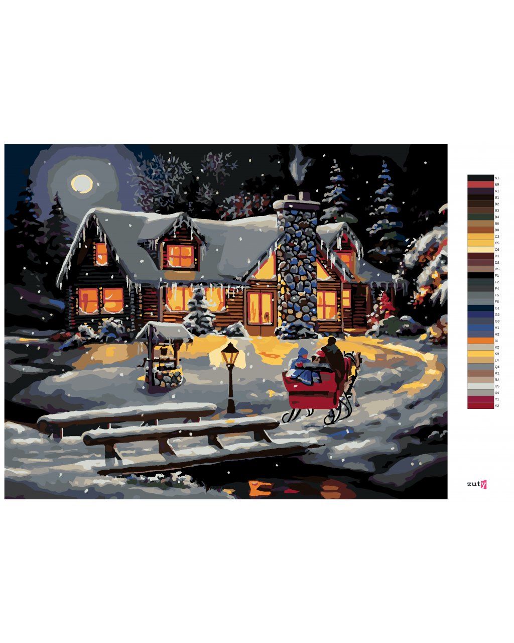 Malování podle čísel - ZASNĚŽENÝ SRUB PO SOUMRAKU (D. RUSTY RUST)