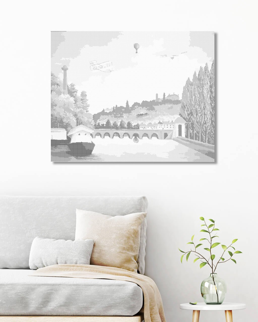 Tečkování - POHLED NA MOST V SEVRES A KOPCE CLAMART (HENRI ROUSSEAU)